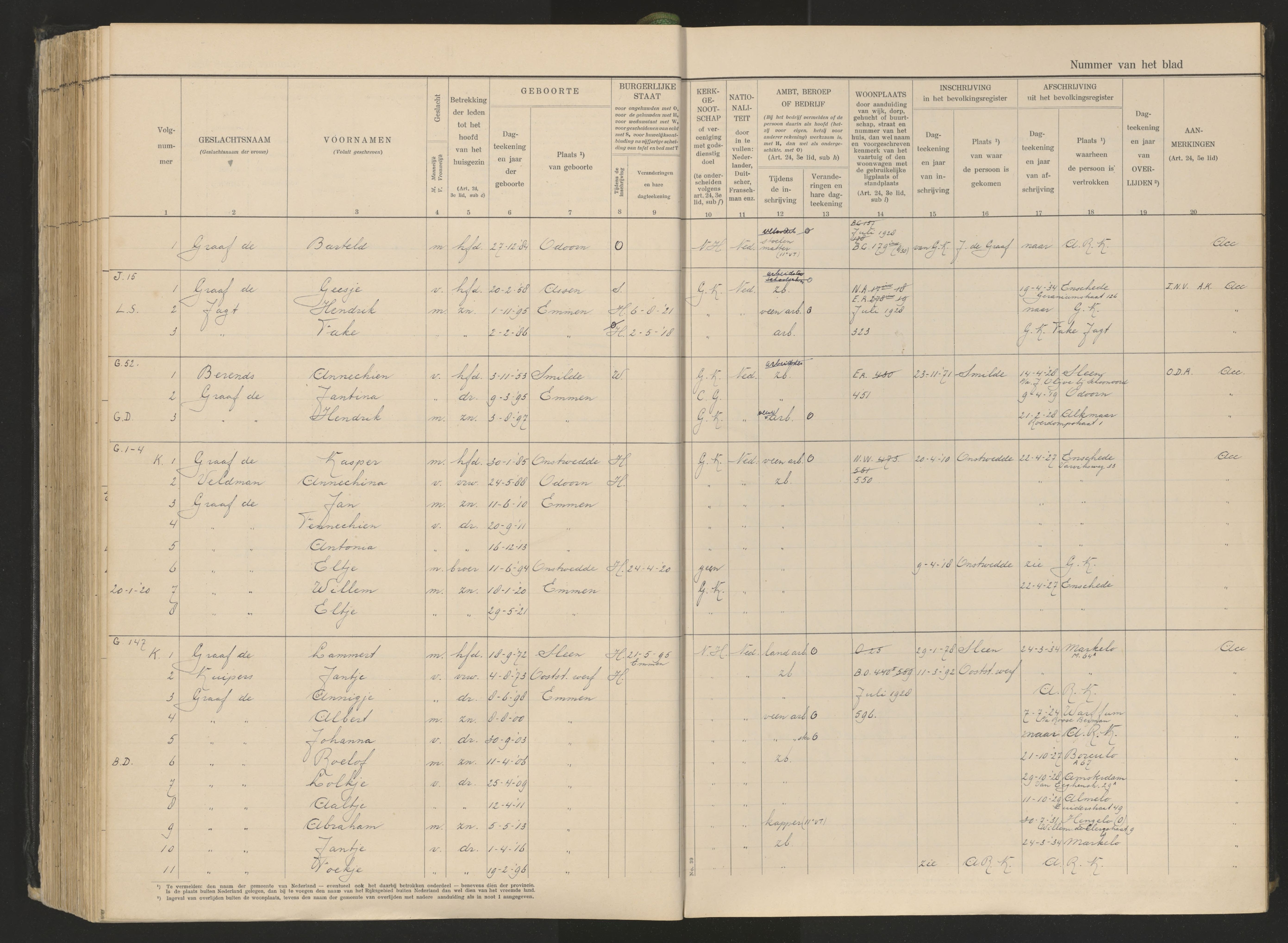 Vertrokken personen Emmen 1926-1936 Barteld-de Graaf http://alledrenten.nl/bronnen-bevolkingsregisters http://alledrenten.nl/bronnen-bevolkingsregisters https://www.wiewaswie.nl/nl/detail/14523256ouders: Jan de Graaf, Andersien Olijve