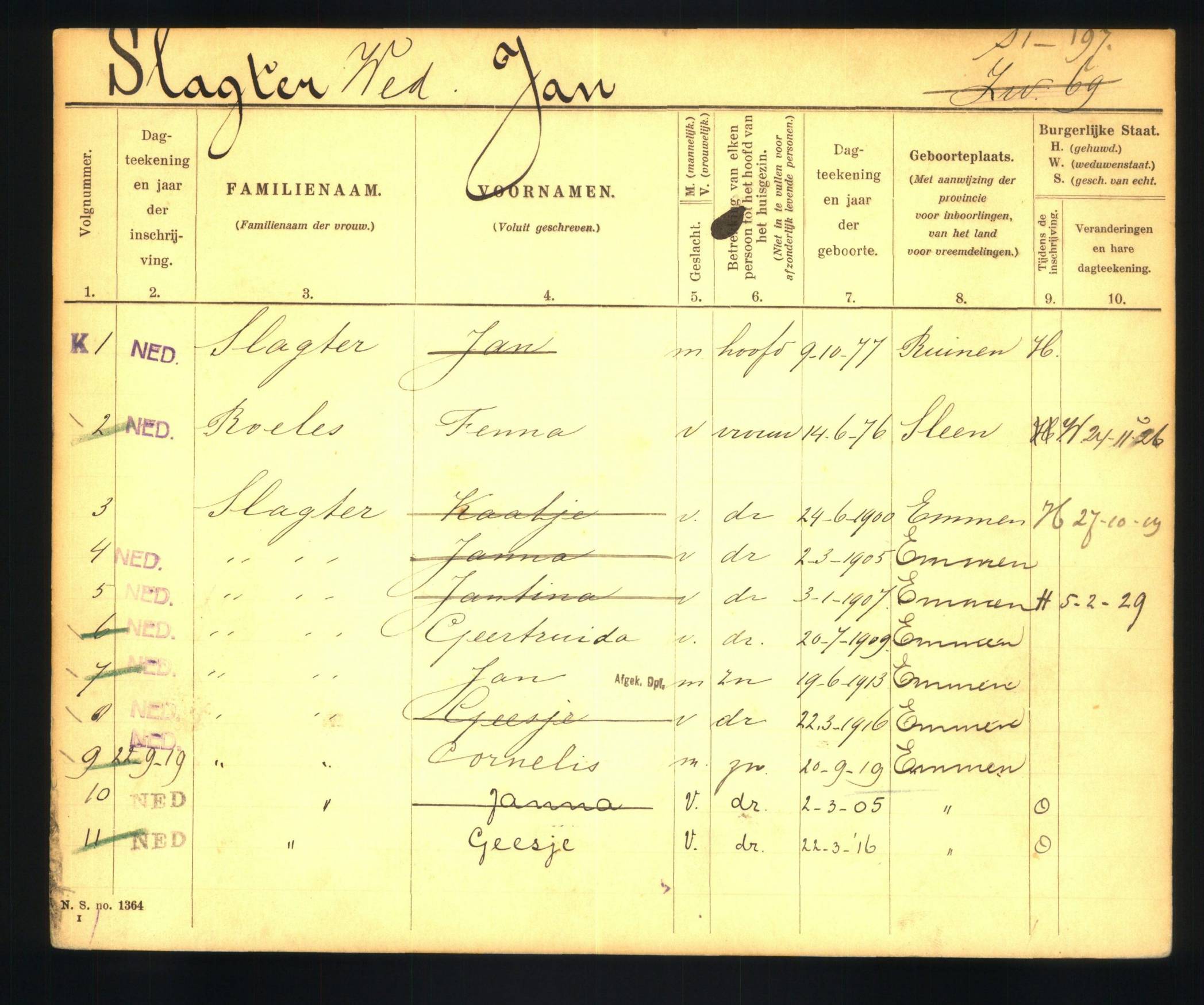 gezinskaart Slagter-Roeles scan 695802 1918-1936Huwelijk, Emmen, 24-04-1900, aktenummer 77