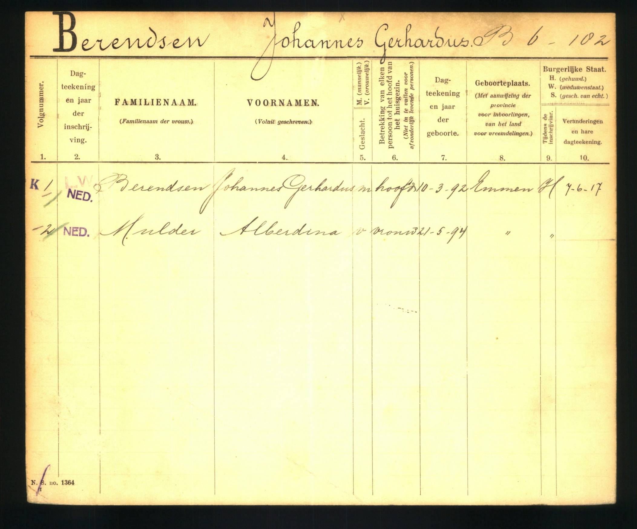 gezinskaart Berendsen-Mulder scan 680752 #831 1918-1936Opmerkingen: vader bruid overleden