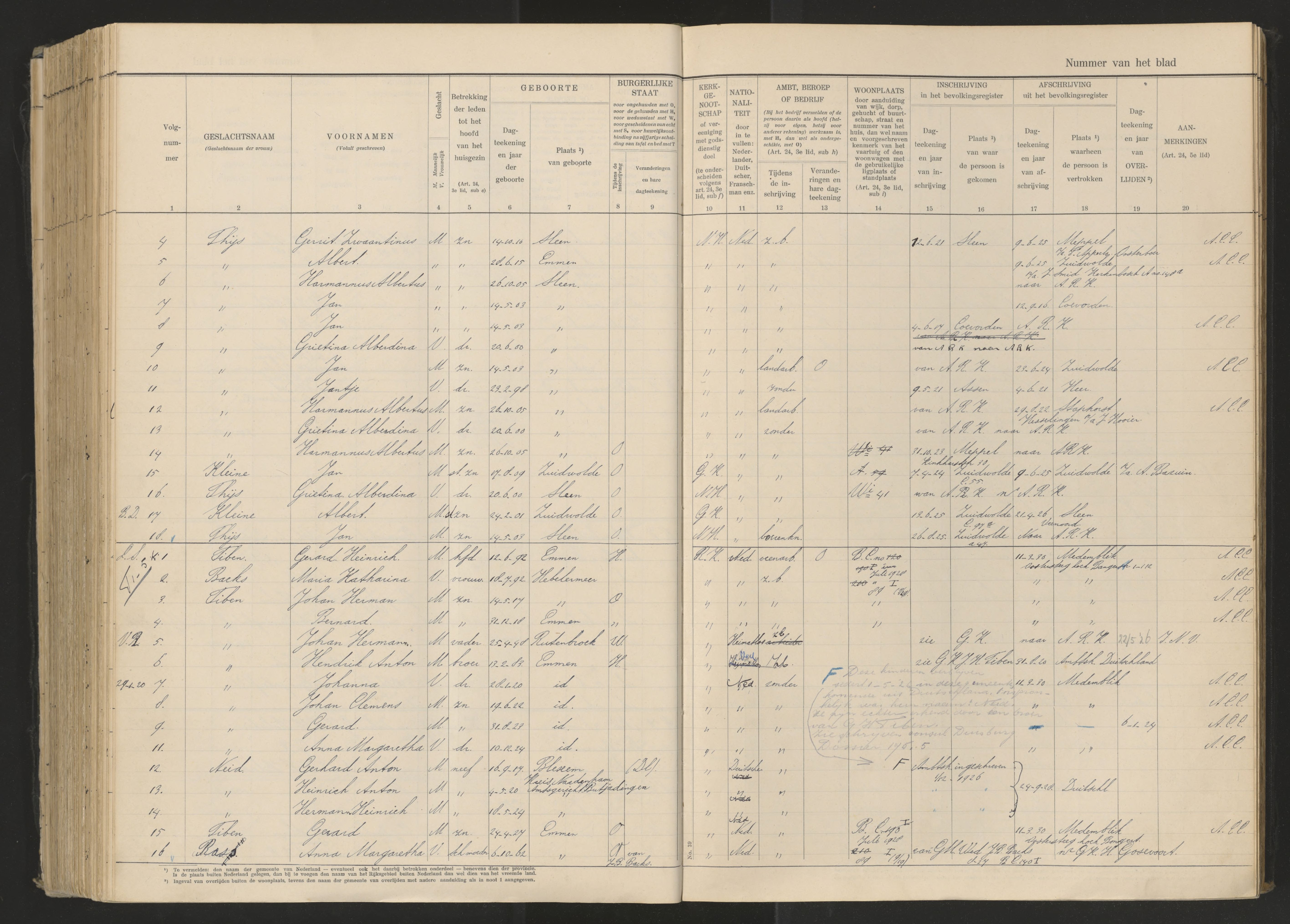 Vertrokken personen Emmen 1926-1936 Tiben-Backs