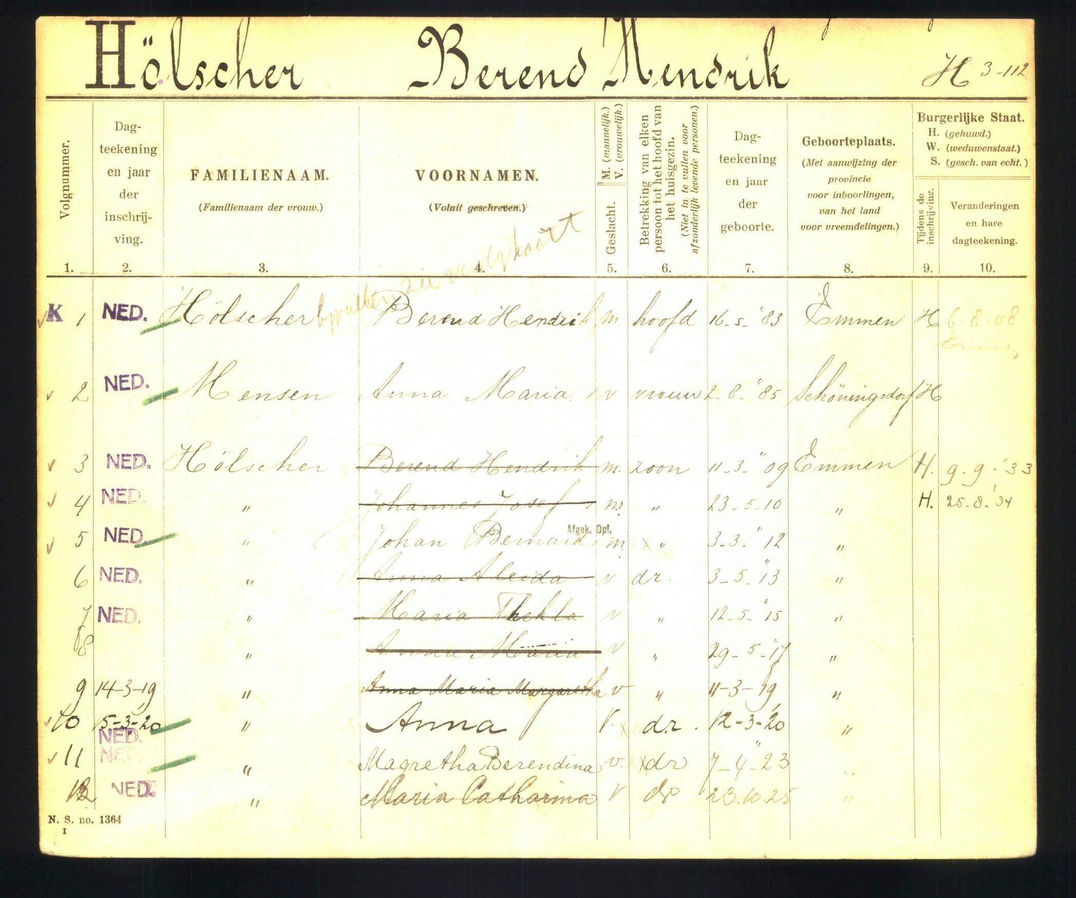 gezinskaart Hölscher-Mensen scan 686812 p6893 1918-1936Huwelijk, Emmen, 06-08-1908, aktenummer 148