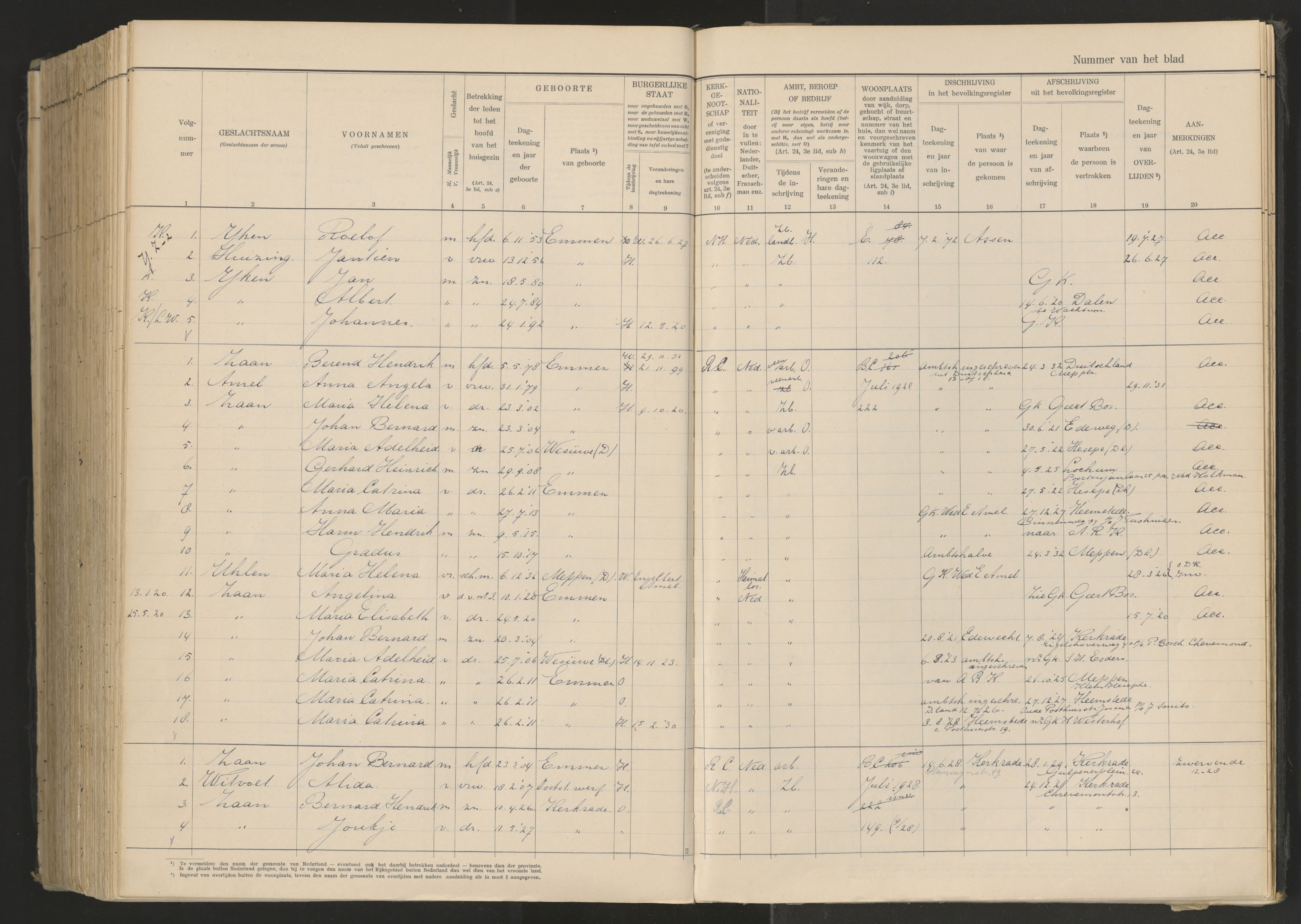 Vertrokken personen Emmen 1926-1936 Zaan-Amel
