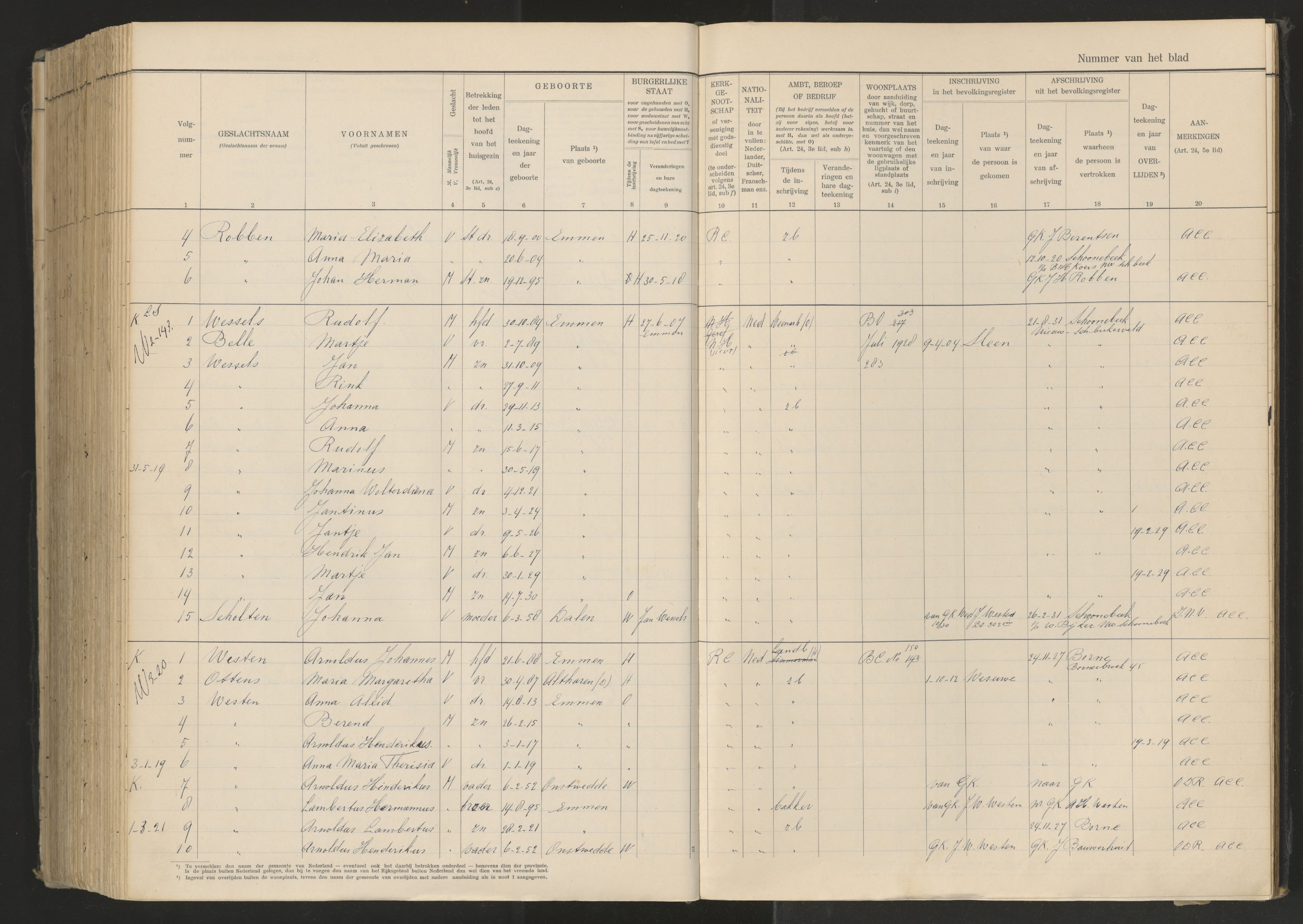 Vertrokken personen Emmen 1926-1936 Westen-Ottens
