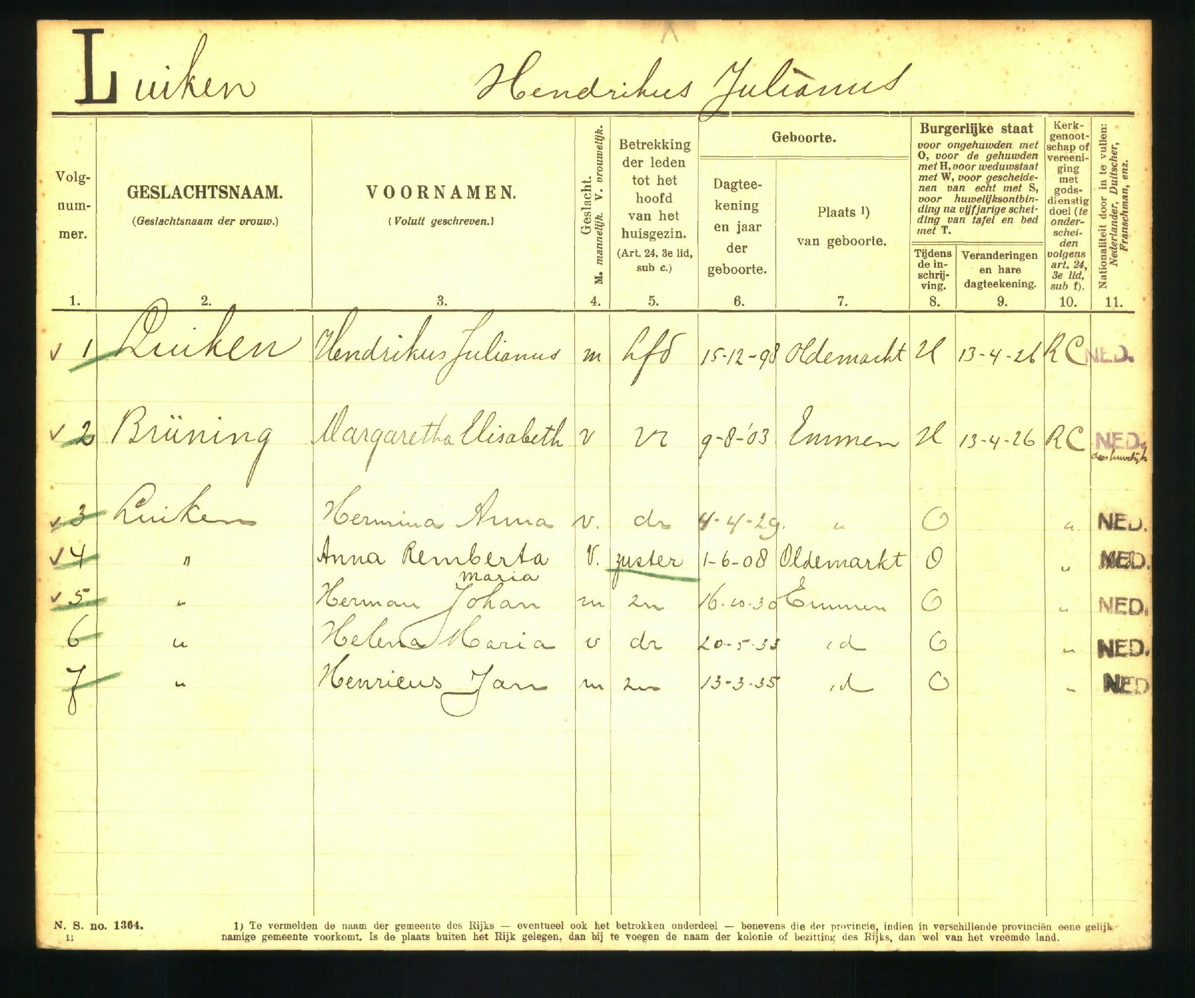gezinskaart Luiken-Brüning 10989 p10989 1918-1936