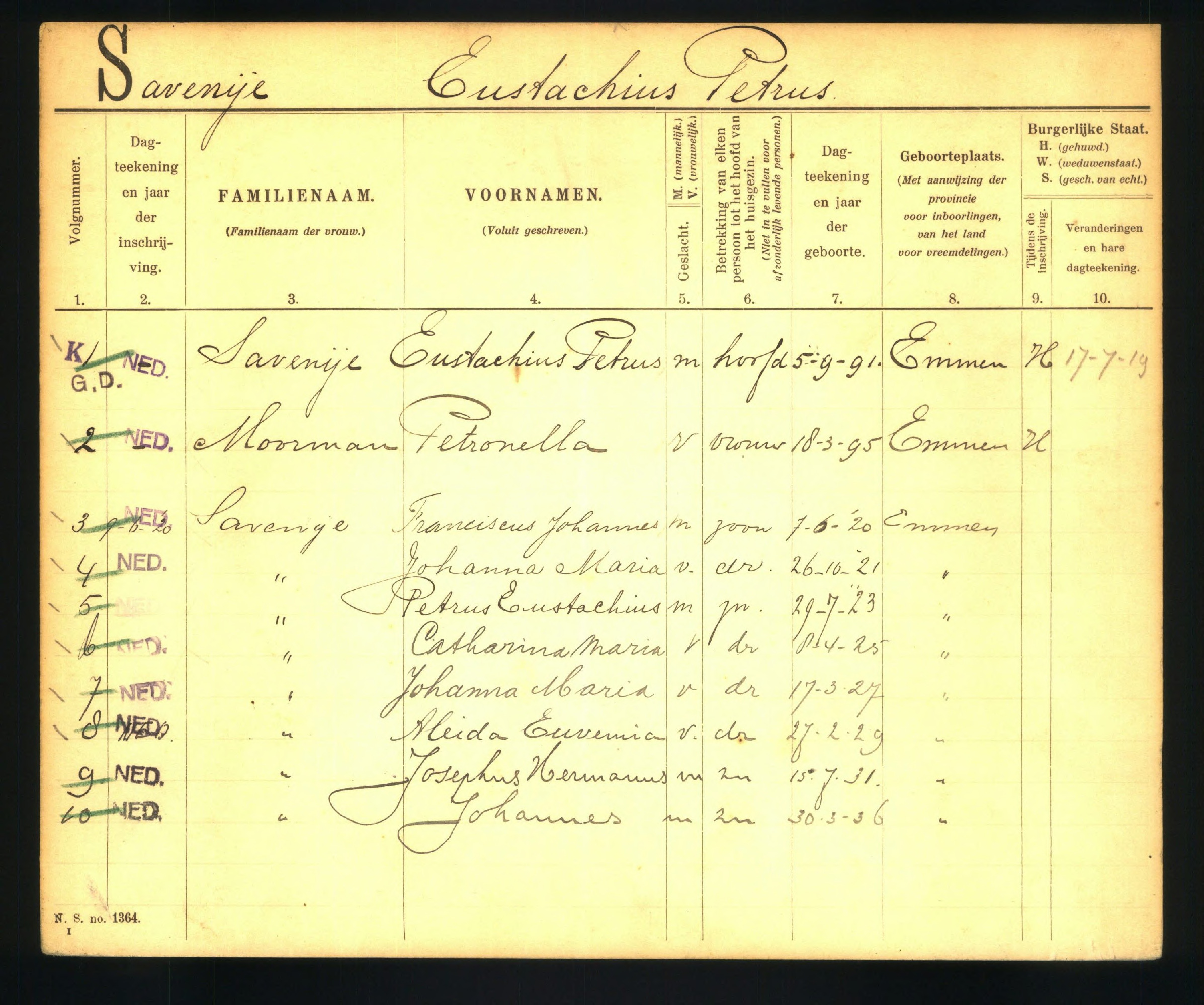gezinskaart Savenije-Moorman 14865 p14865 1918-1936