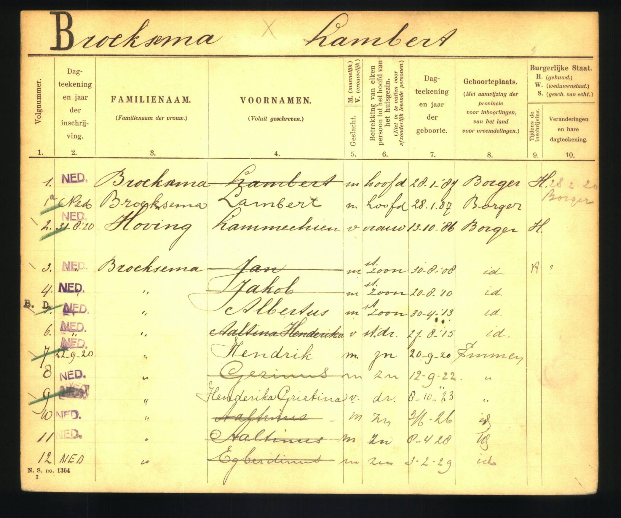 gezinskaart Broeksema-Hoving scan 682316 #2395 1918-1936weduwe Egbert Broeksema; woonplaats bruidegom Emmen; vader bruid overleden; moeder bruid overleden