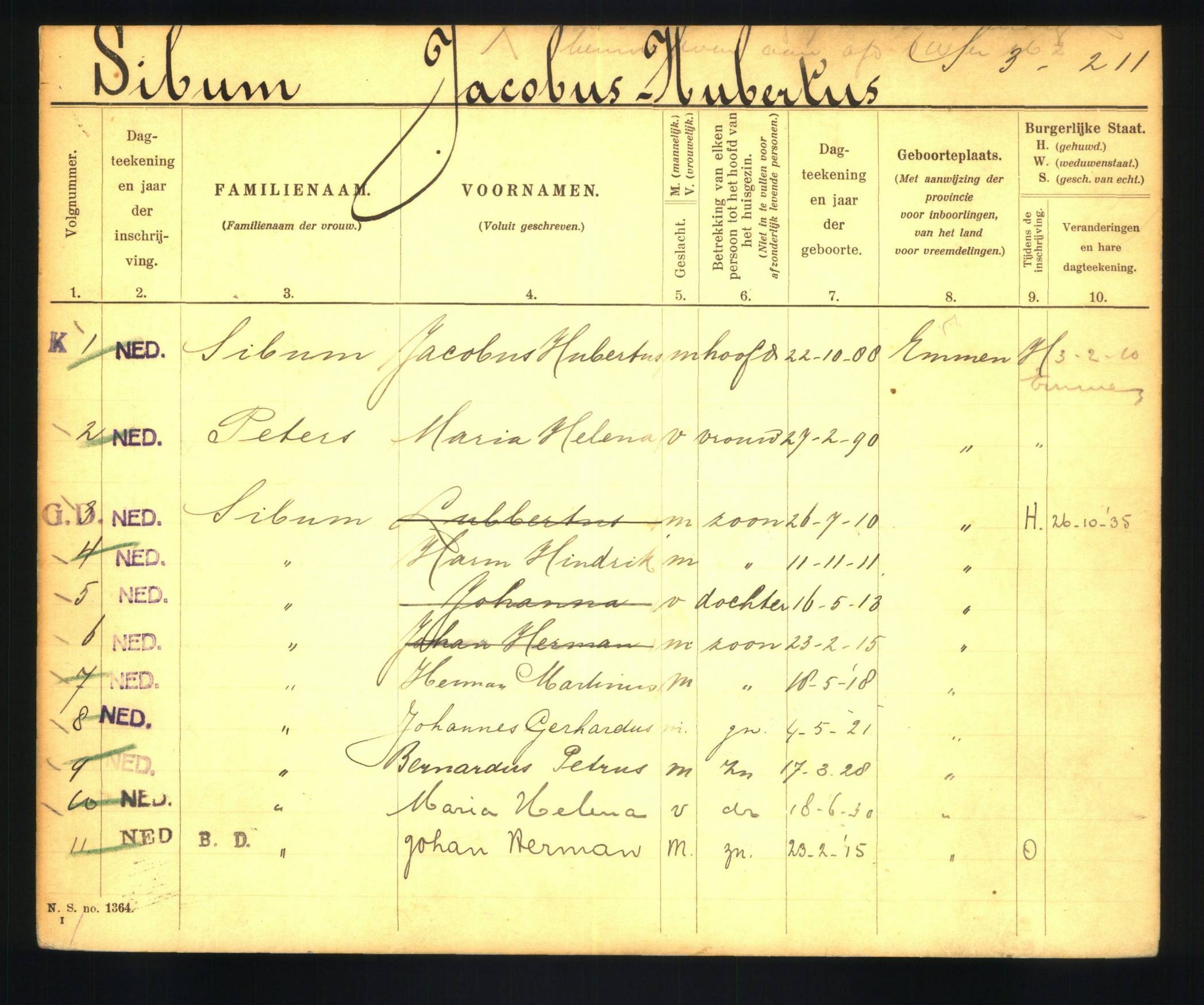 Bruidegom: Jacobus Hubertus Sibum, geboren te Emmen; leeftijd: 21 jaar; beroep: arbeider , zoon van Lubbertus Sibum, beroep: arbeider en Johanna van Os, beroep: arbeider