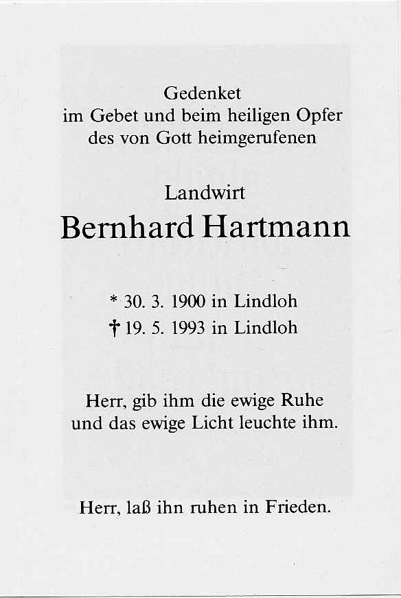 Hartmann Bernhard (1900-1993) bidprentje