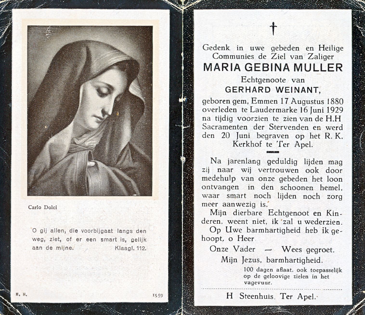 Dag van overlijden 16 juni 1929