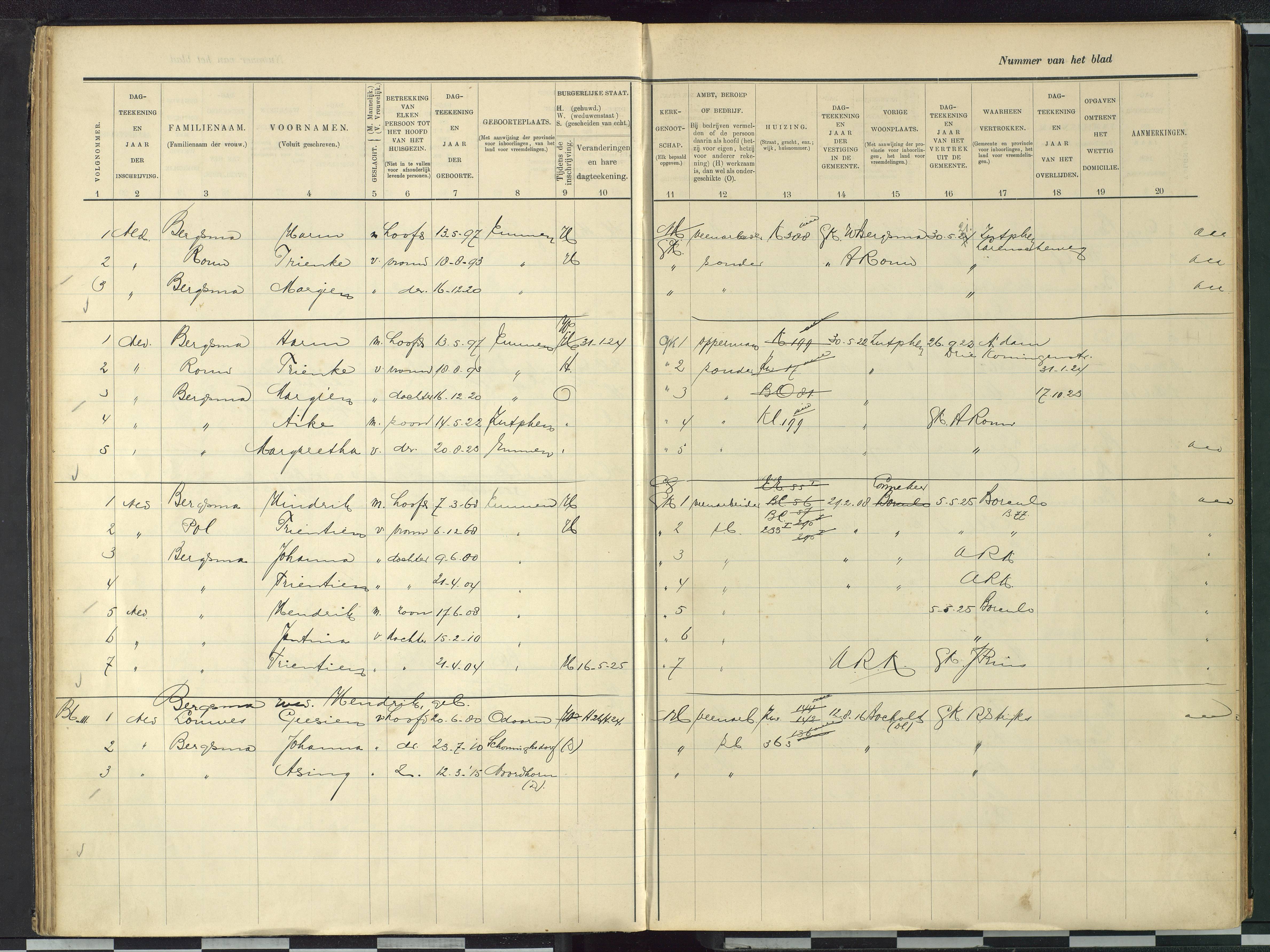 Vertrokken personen Emmen 1918-1925 vertrokken personen Bergsma-Pol scan 700532 https://www.wiewaswie.nl/nl/detail/14669514