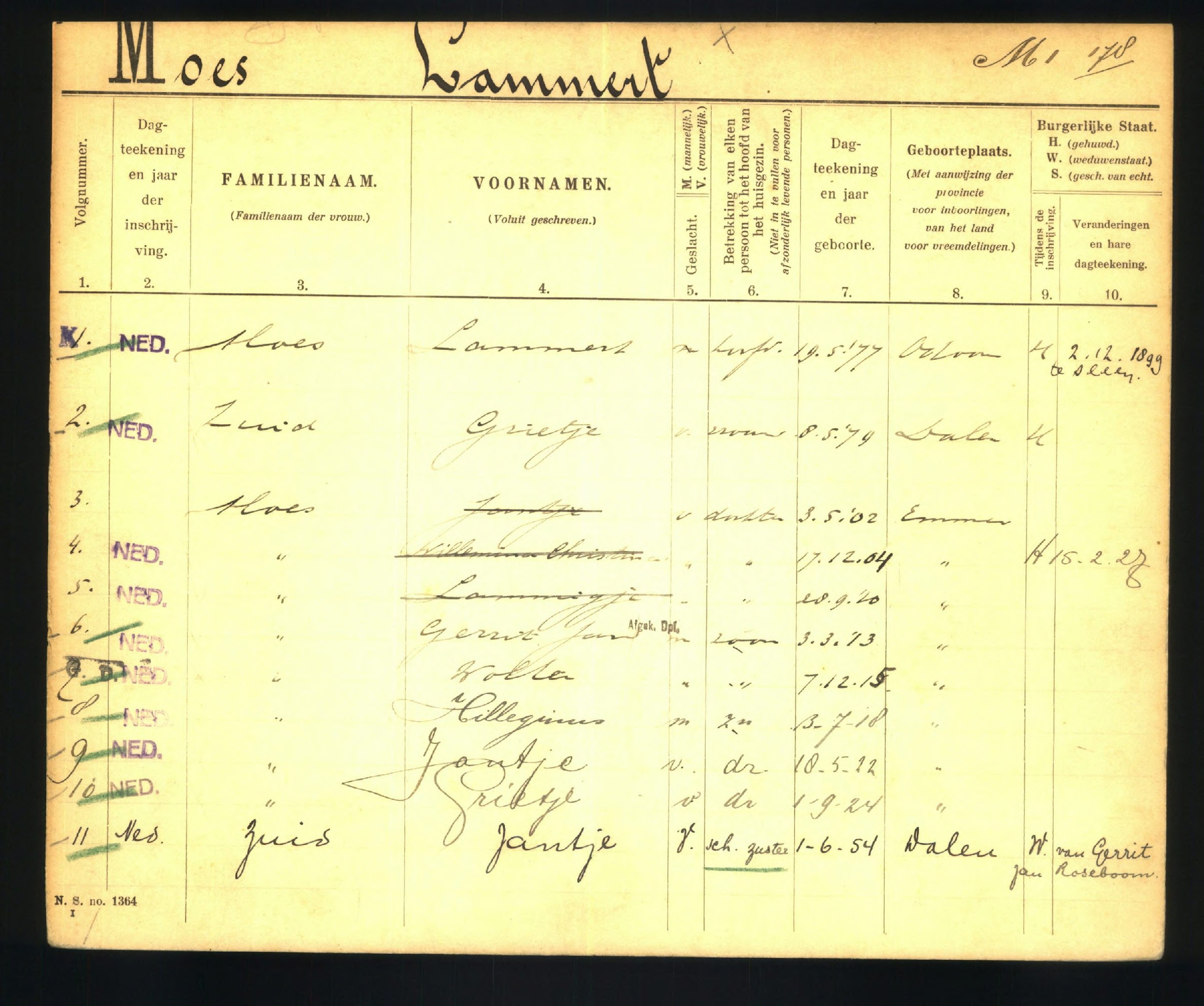 gezinskaart Moes-Zuid 11819 p11819 1918-1936Opmerkingen: voogd bruid Gerrit Jan Rozeboom; toeziend voogd bruid Reinder Pepping