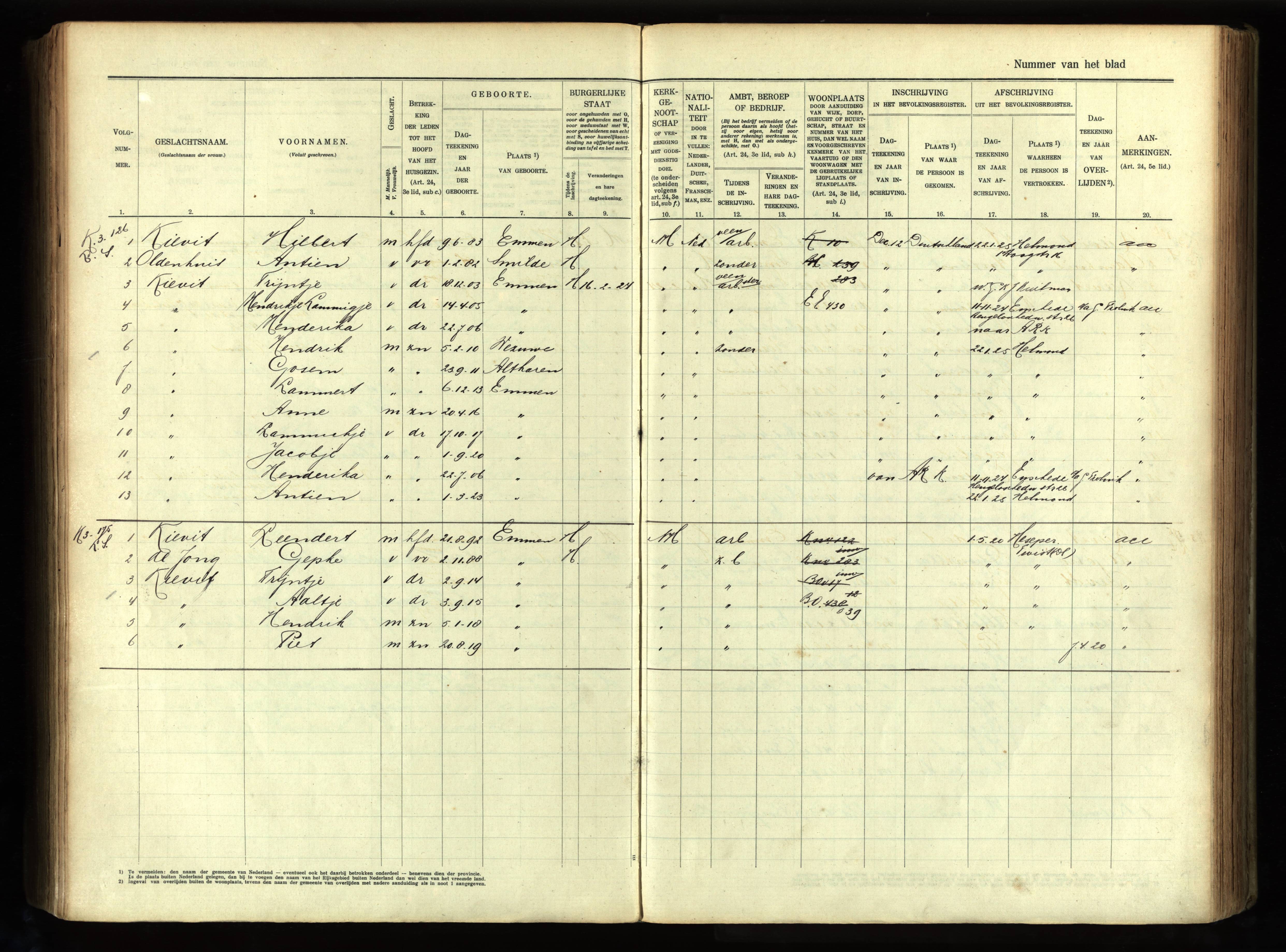 Vertrokken personen Emmen 1918-1925 Kievit-Oldenhuis scan 701129 https://www.wiewaswie.nl/nl/detail/14679257Opmerkingen: vader bruid overleden