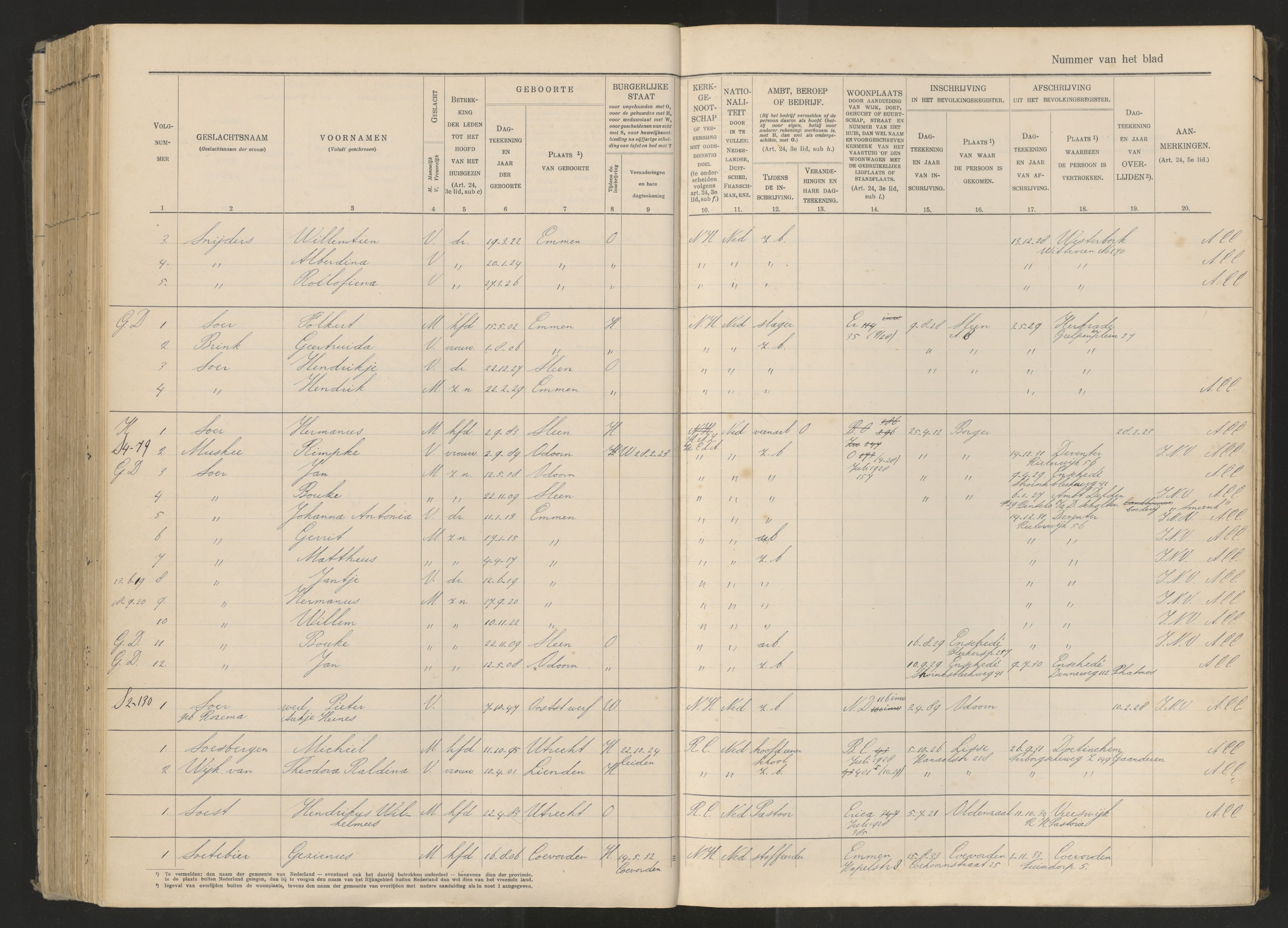Vertrokken personen Emmen 1926-1936 Soesbergen-van Wijk