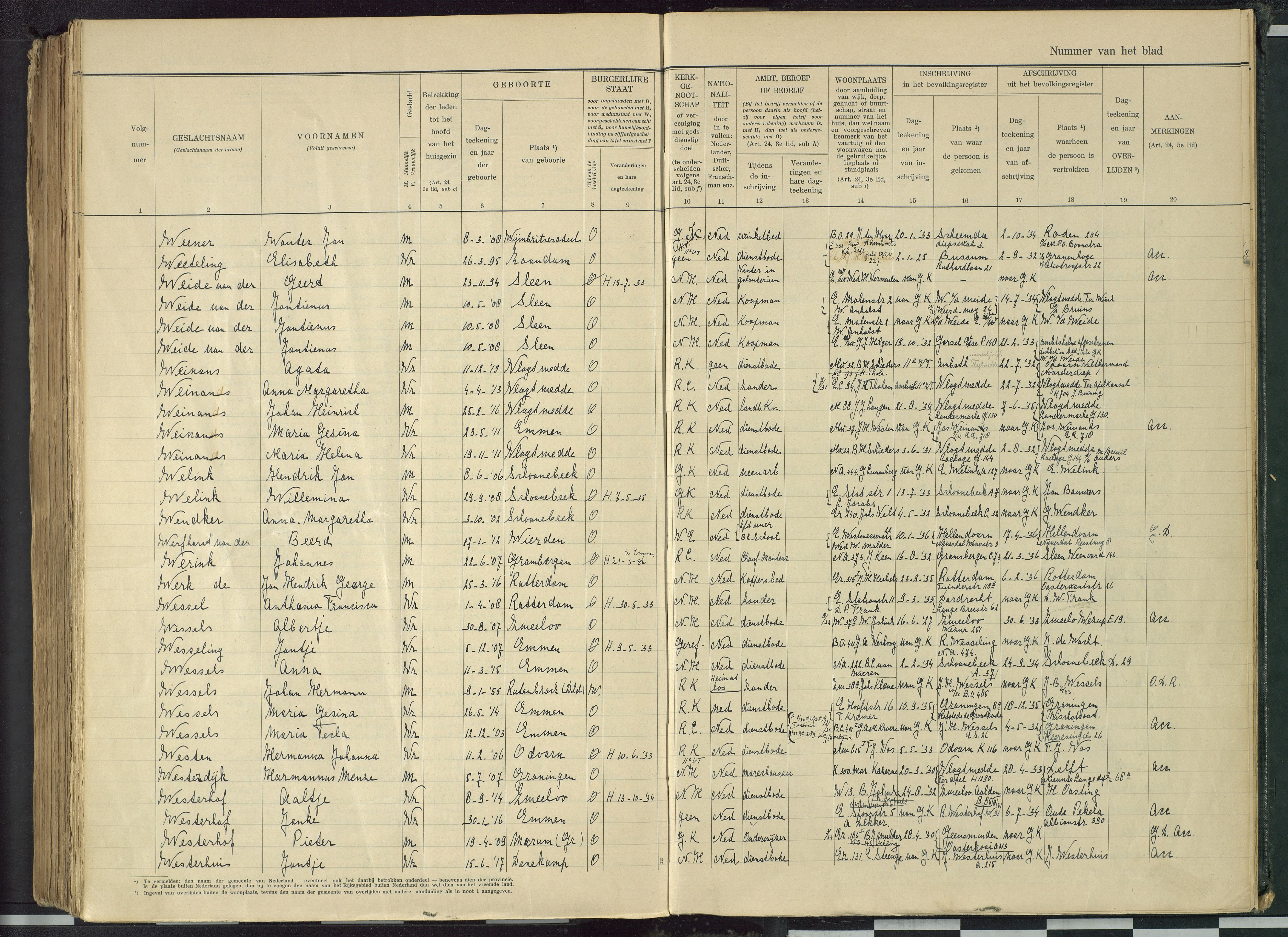 Vertrokken personen dienstbodenregister Emmen 1918-1932 Maria Tecla Wessels