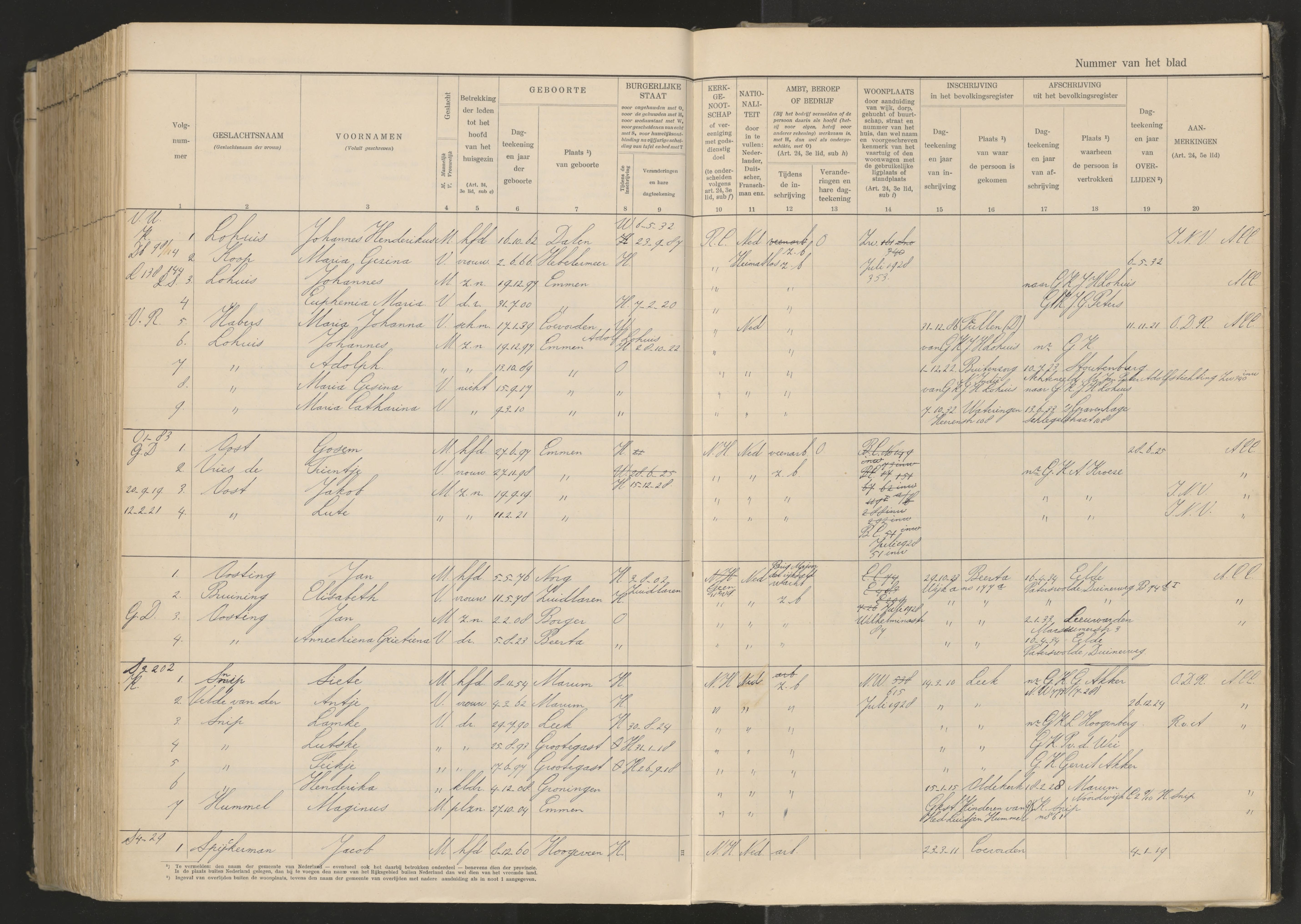 Vertrokken personen Emmen 1926-1936 Oost-de Vries