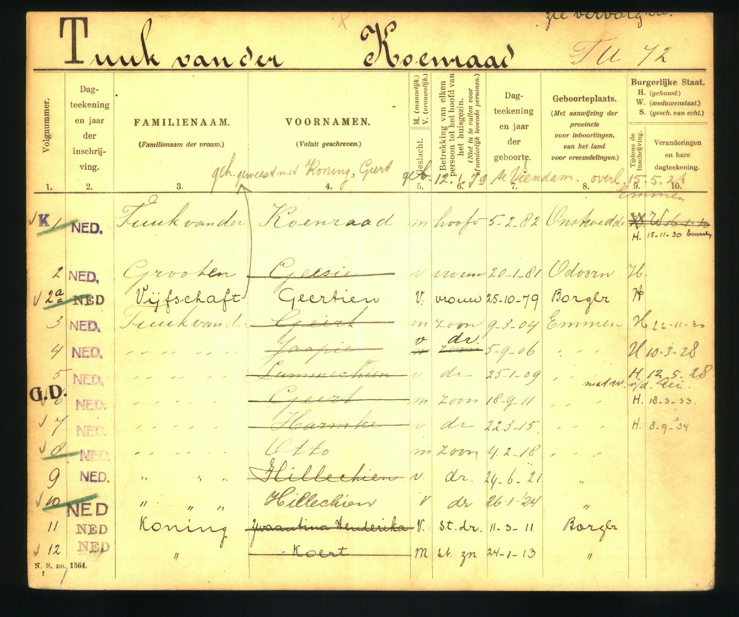 gezinskaart van der Tuuk-grooten 1918-1936 scan 17475 https://www.drentsarchief.nl/onderzoeken/genealogie/bladeren-door-bronnen/registers/ https://www.wiewaswie.nl/nl/detail/14679078