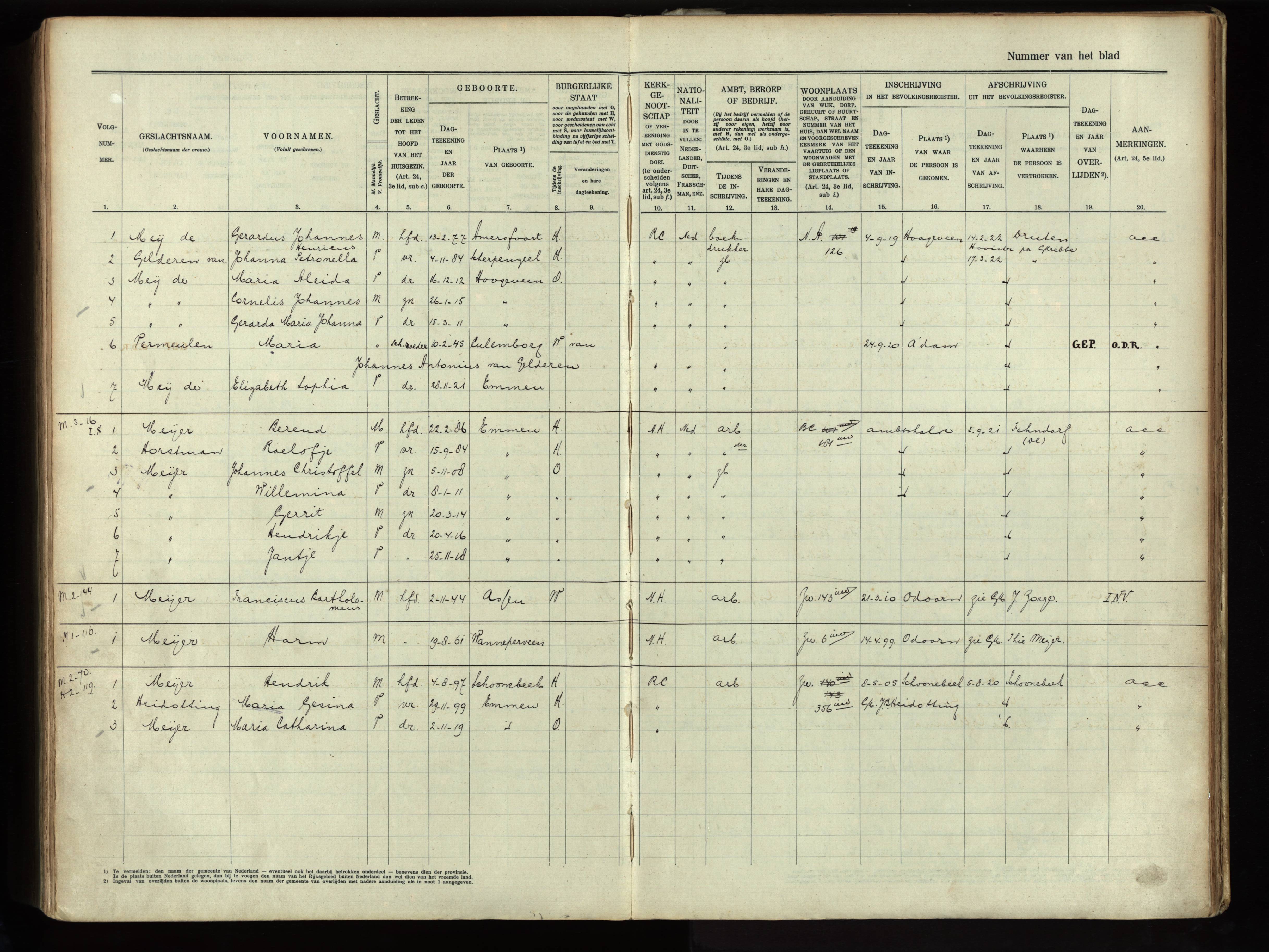 Vertrokken personen Emmen 1918-1925 Meijer-Horstman scan 701220 https://www.wiewaswie.nl/nl/detail/14682520