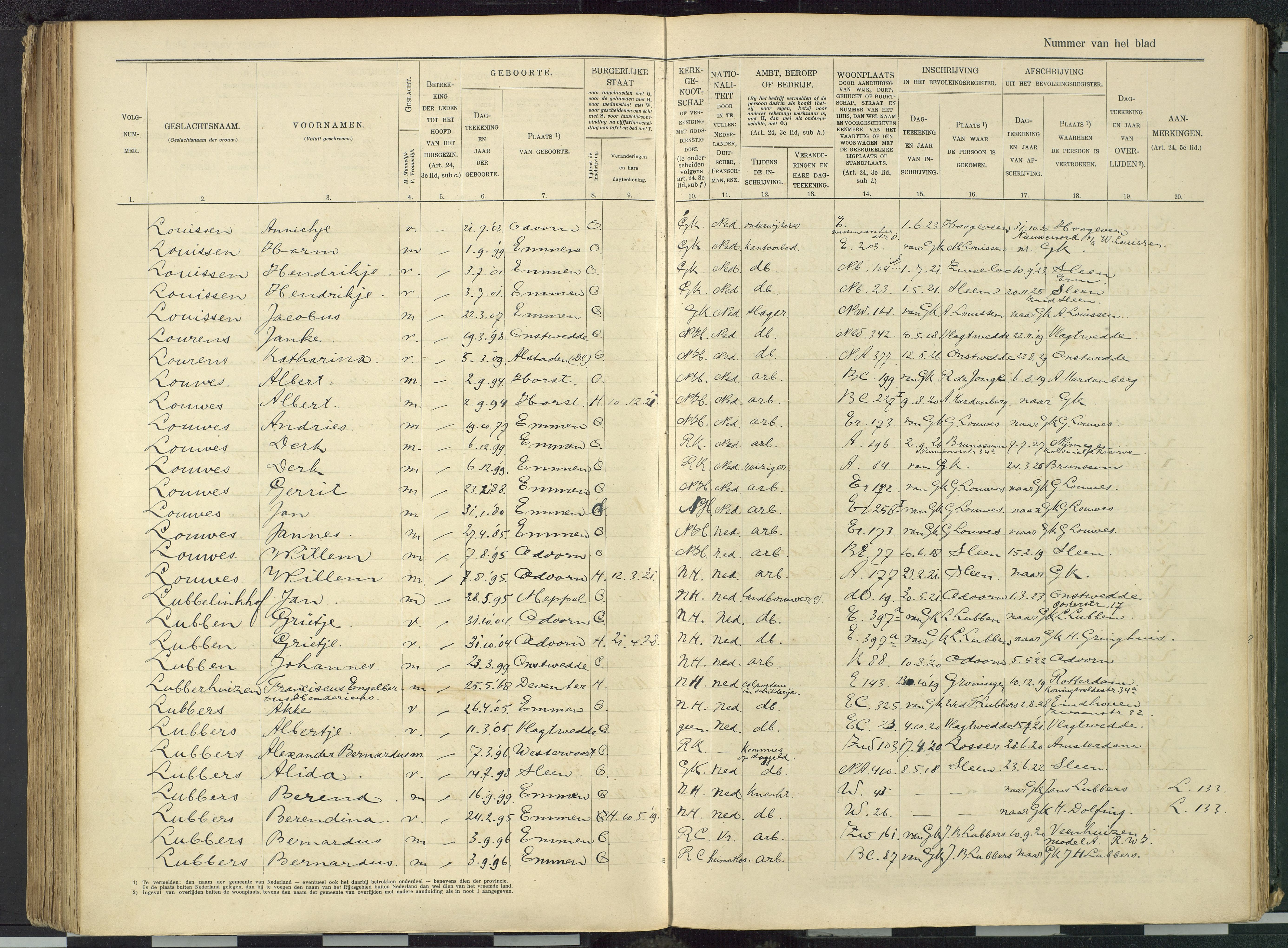Vertrokken personen dienstbodenregister Emmen 1918-1932 Bernardus LubbersPauline Berens: Genealogienetwerk zus Greetje Berens voorheen EemslandBoekweitBoerenImmigratie