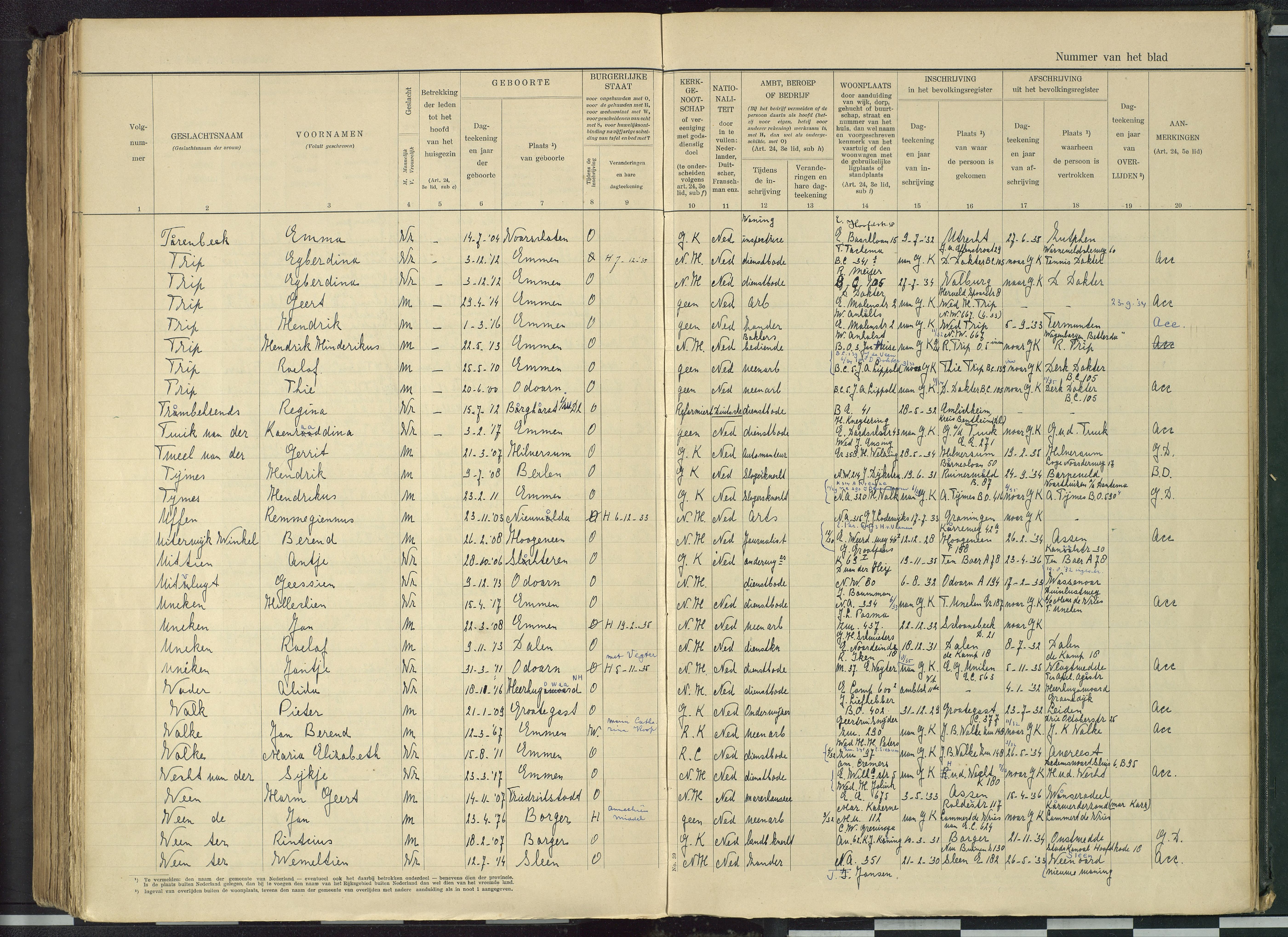 Vertrokken personen dienstbodenregister Emmen 1918-1932 Egberdina TripOpmerking: Akte doorgestreept. Het huwelijk vond wel plaats op 07-12-1935