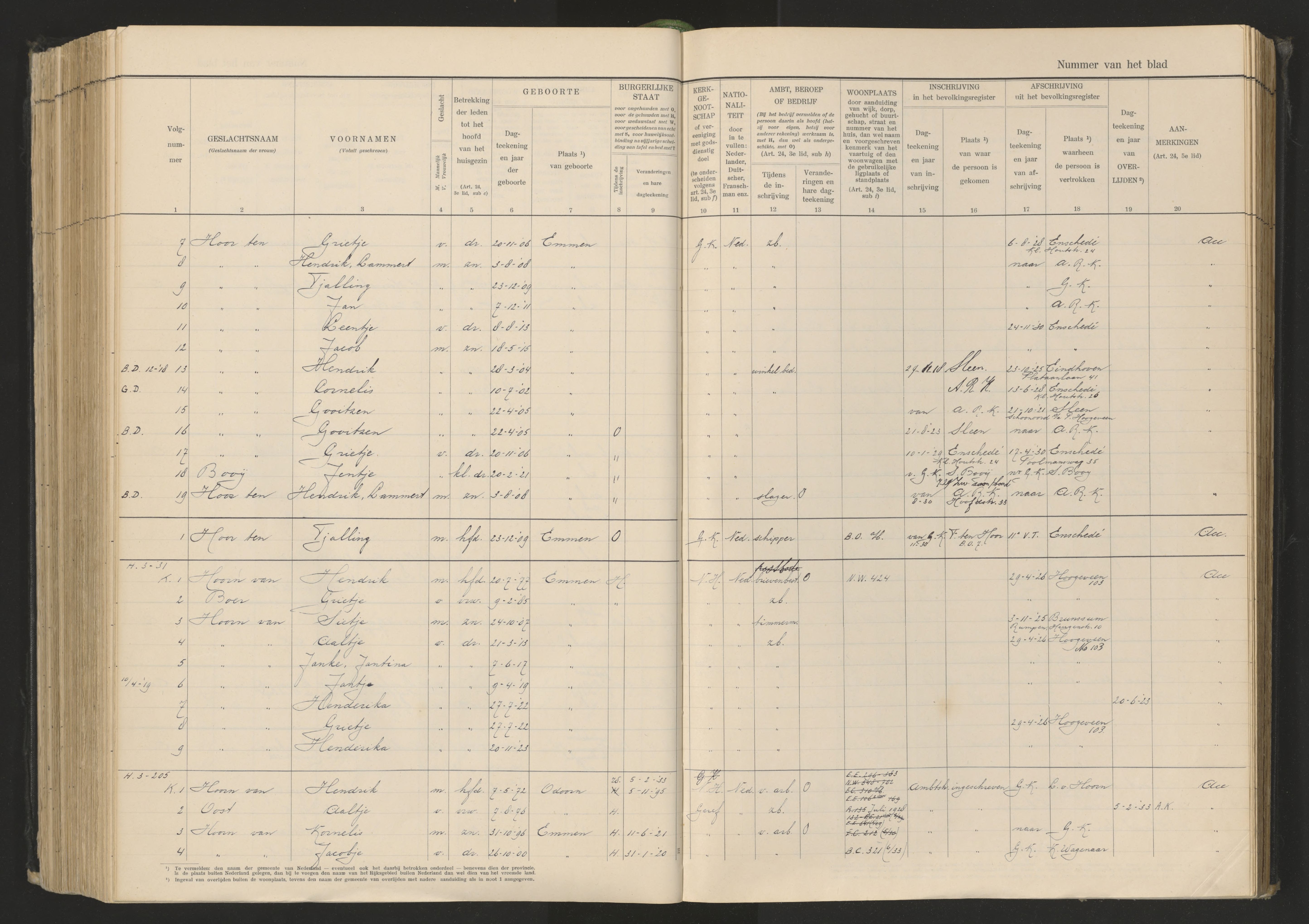 Vertrokken personen Emmen 1926-1936 van Hoorn-Oost https://www.wiewaswie.nl/nl/detail/14672839Opmerkingen: vader bruid overleden
