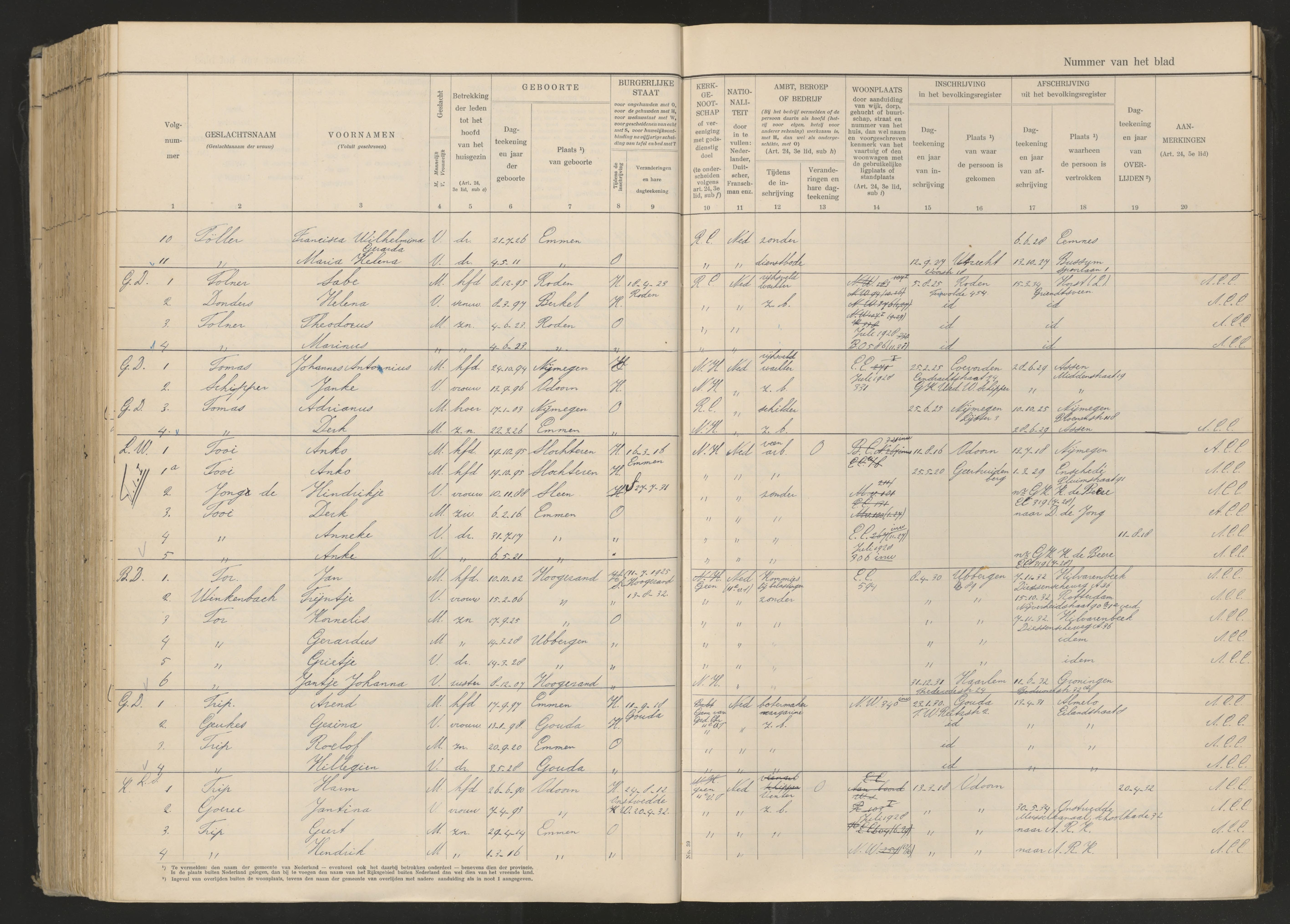 Vertrokken personen Emmen 1926-1936 Tooi-de JongOpmerkingen: echtscheiding Almelo 24-06-1931