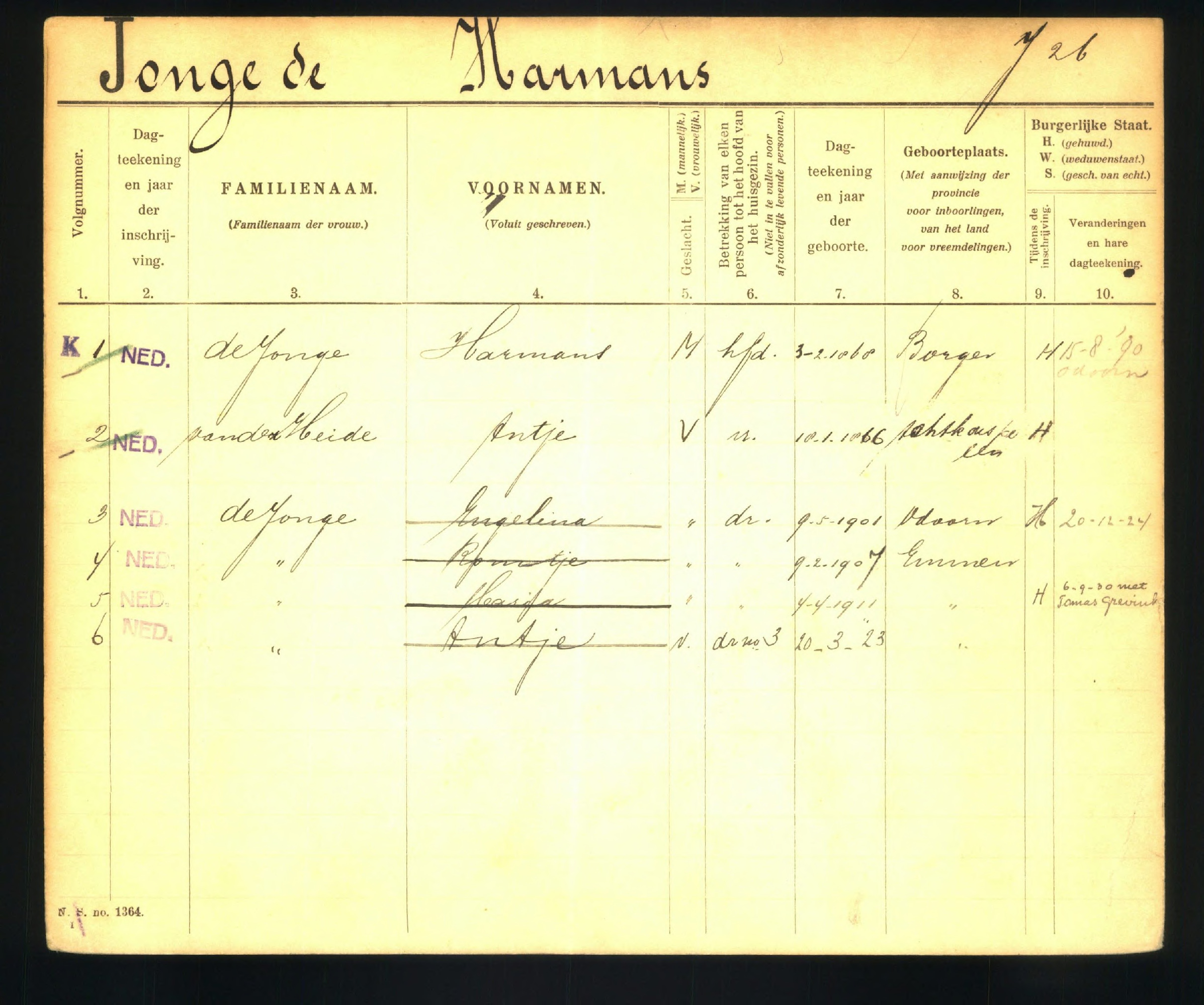 gezinskaart de Jonge-van der Heide 08129 p8129 1918-1936 https://www.drentsarchief.nl/onderzoeken/genealogie/bladeren-door-bronnen/registers/ https://www.wiewaswie.nl/nl/detail/14691078