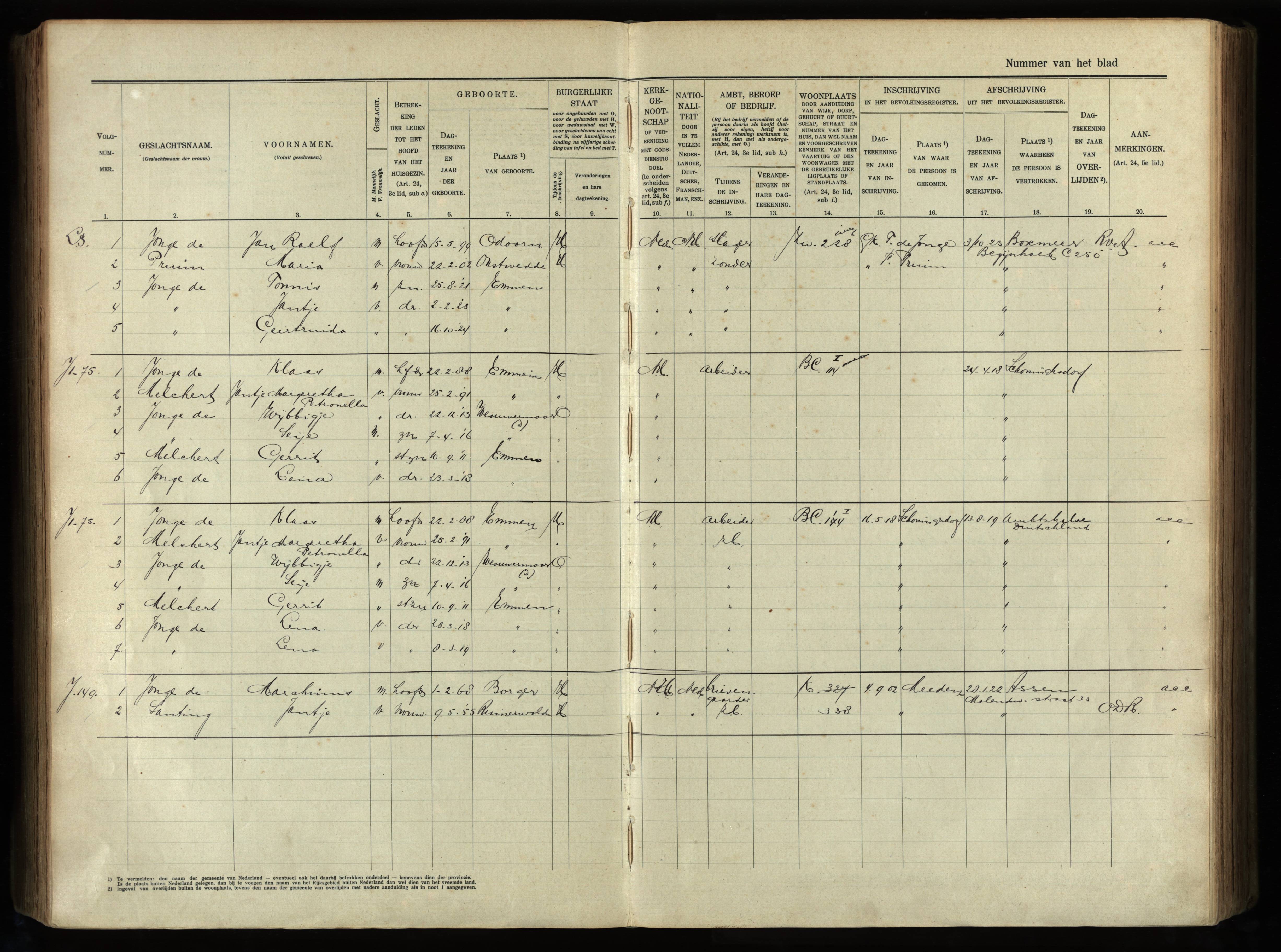 Vertrokken personen Emmen 1918-1925 de Jonge-Melchert scan 701103 https://www.drentsarchief.nl/onderzoeken/genealogie/bladeren-door-bronnen/registers/