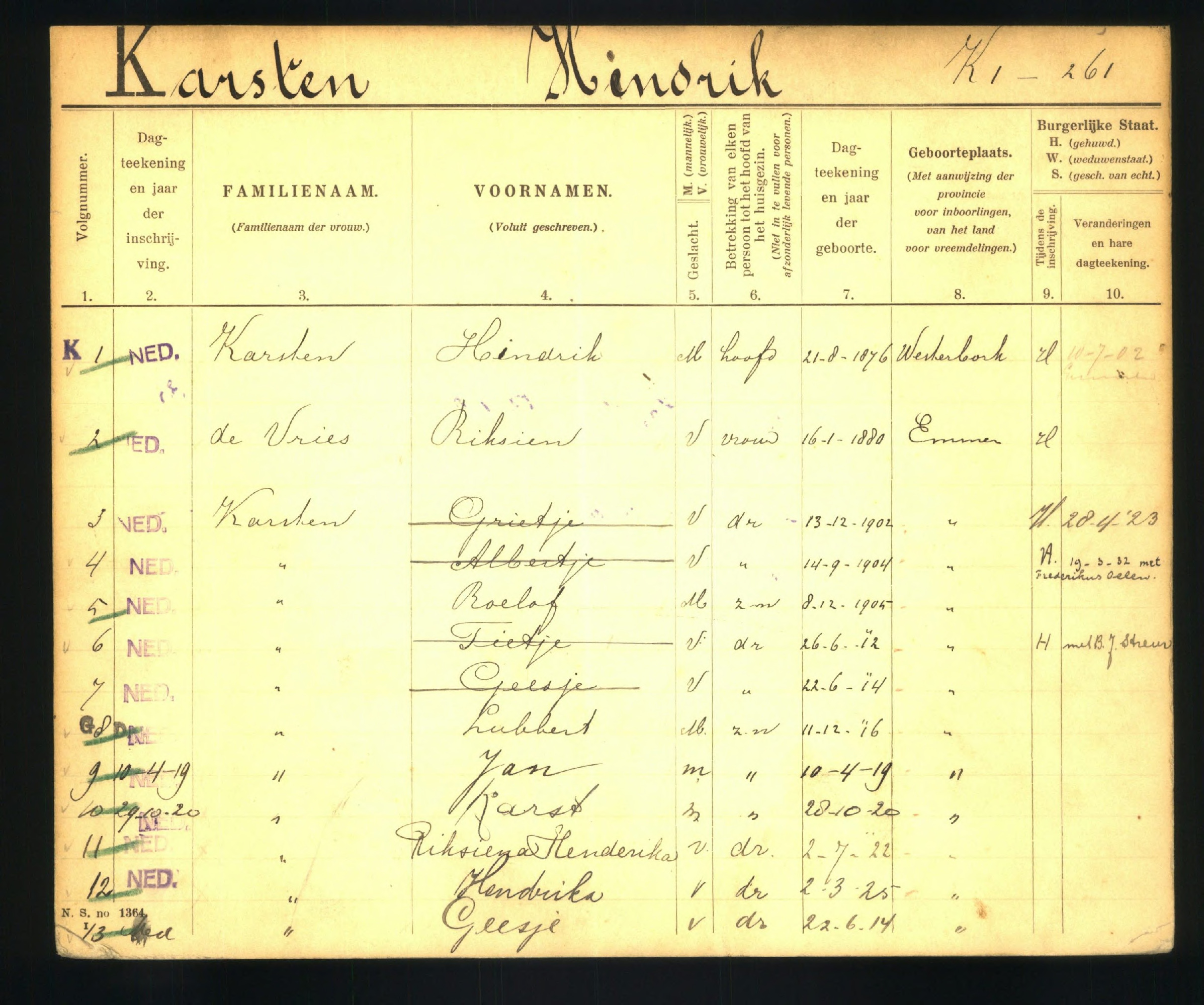 Wilt u bij het overnemen van gegevens uit deze stamboom alstublieft een verwijzing naar de herkomst opnemen: Pauline Berens BC, "Bevolkingsreconstructie Barger-Compascuum + Gezin + Rechtstreekse Voorouders + Nakomelingen", database, Genealogie Online (https://www.genealogieonline.nl/ofb-barger-compascuum/I68082.php : benaderd 27 december 2025), "Riksien de Vries (1880-1947)".