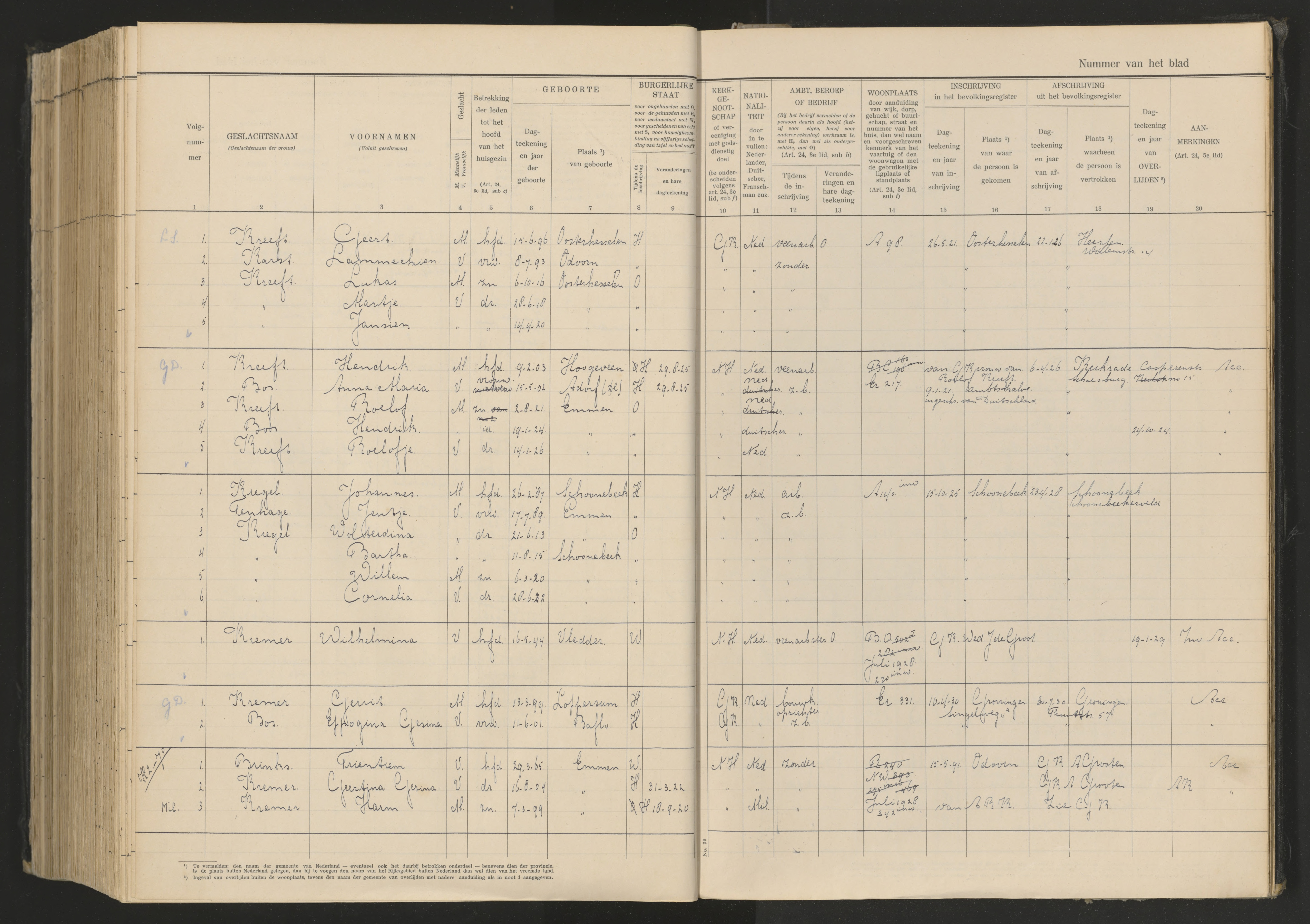 Vertrokken personen Emmen 1926-1936 Kreeft-Bos https://www.wiewaswie.nl/nl/detail/14710913Opmerkingen: moeder bruid overleden; wettiging 1 kind