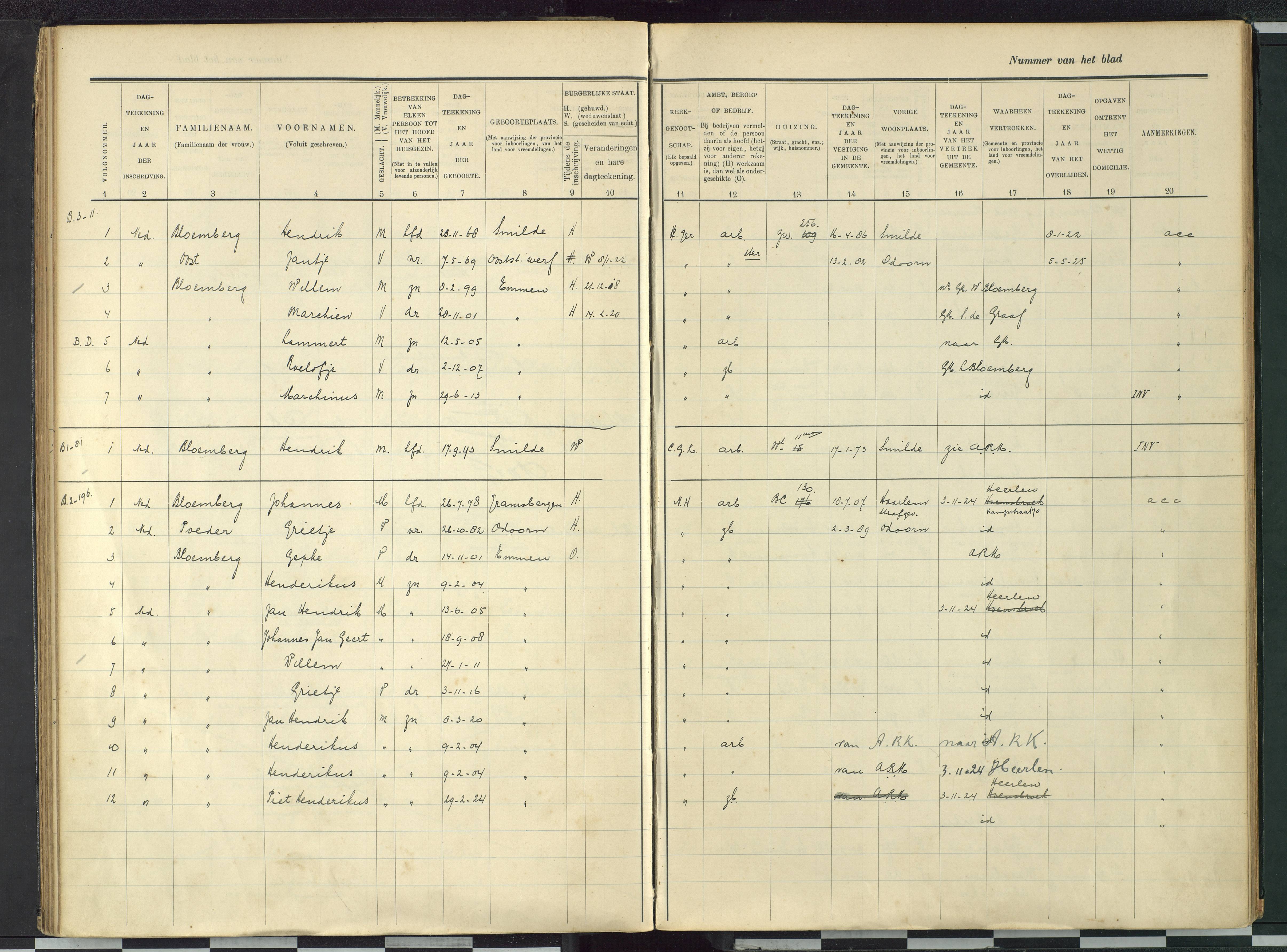 Vertrokken personen Emmen Bloemberg-Poeder scan 700545 1918-1925 scan /