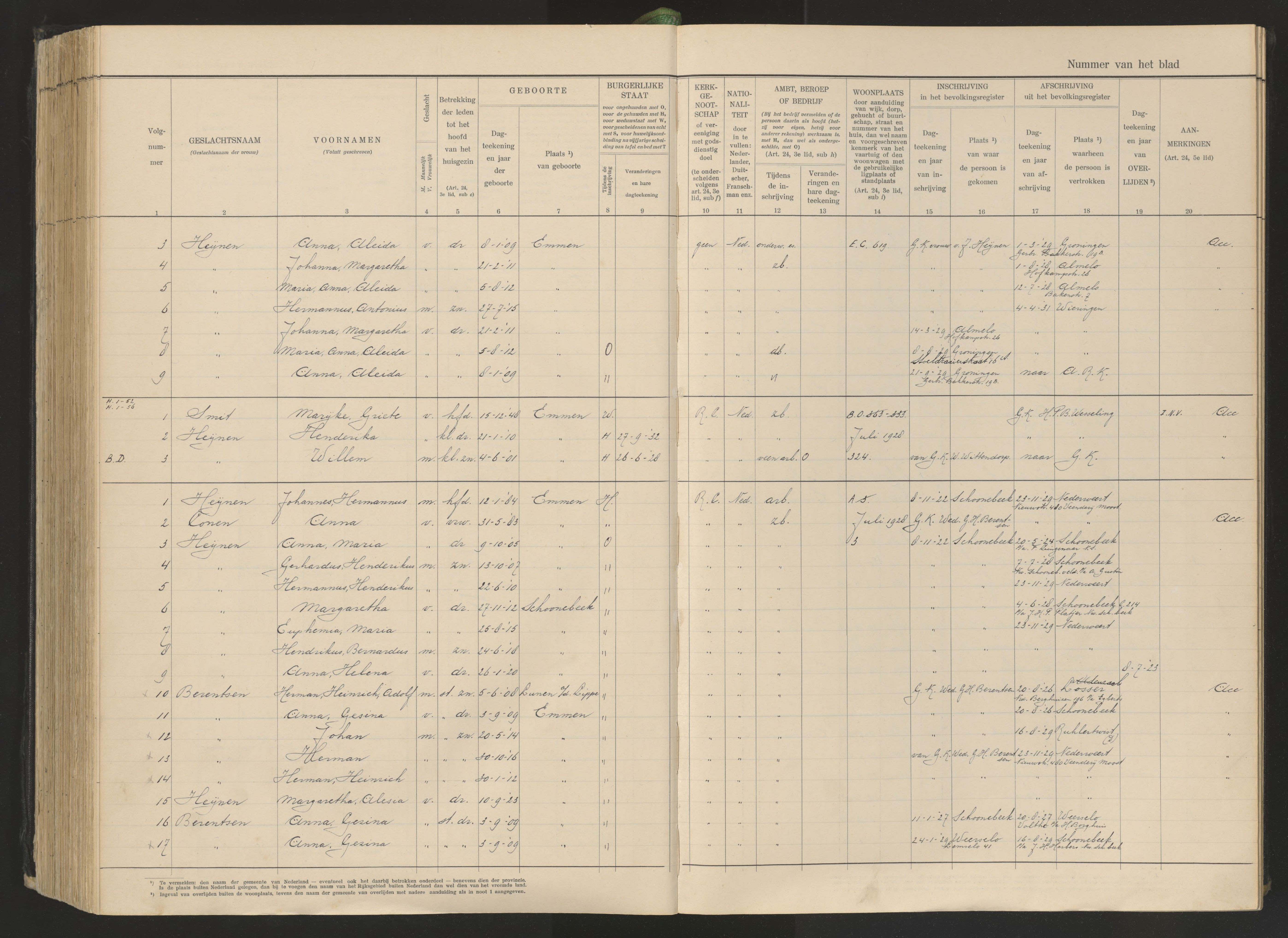 Vertrokken personen Emmen 1926-1936 Heijnen-Pragt