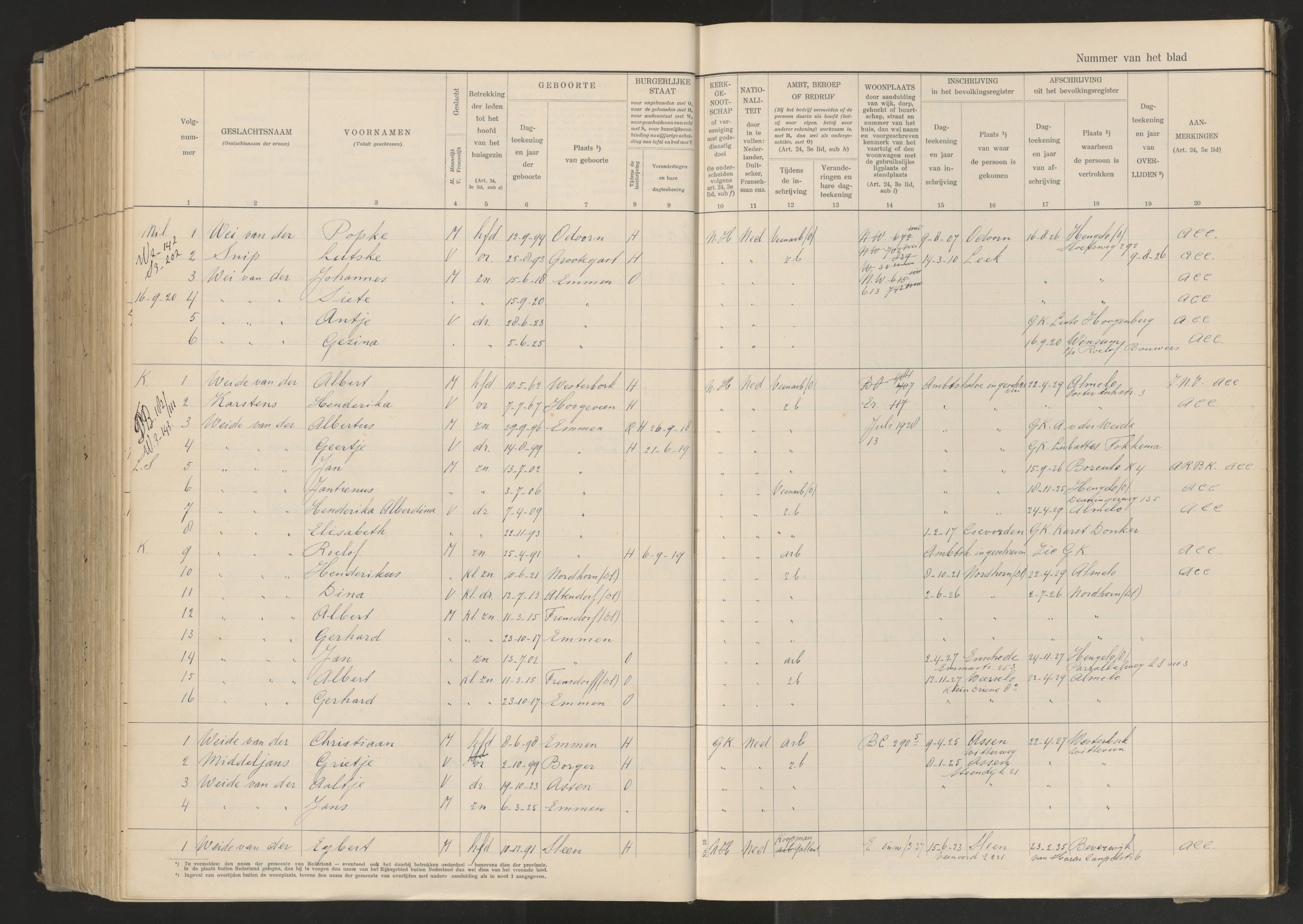 Vertrokken personen Emmen 1926-1936 van der Weide-MiddeljansOpmerkingen: moeder bruidegom overleden (Emmen)
