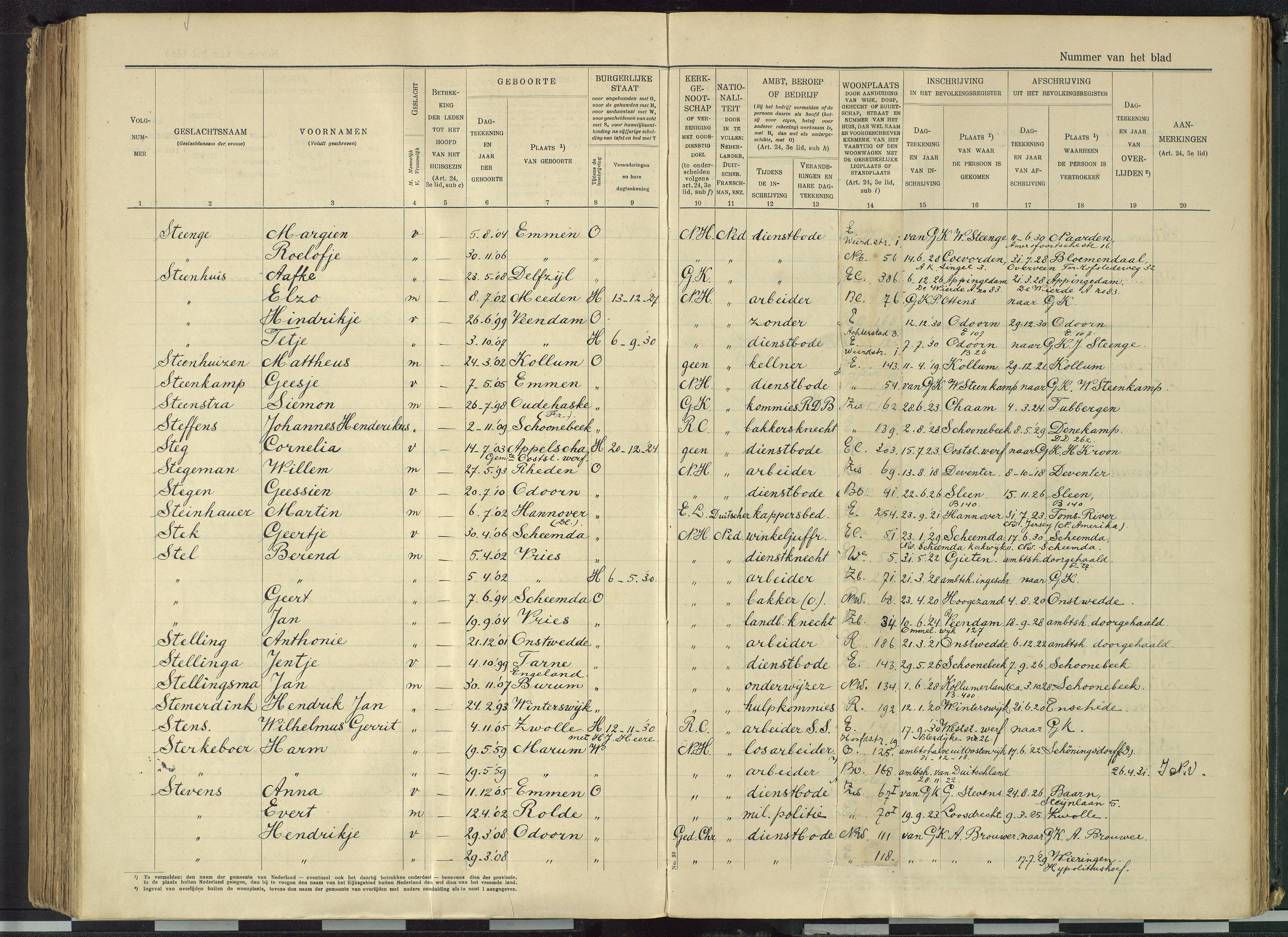 Vertrokken personen dienstbodenregister Emmen 1918-1932 Elzo Steenhuis