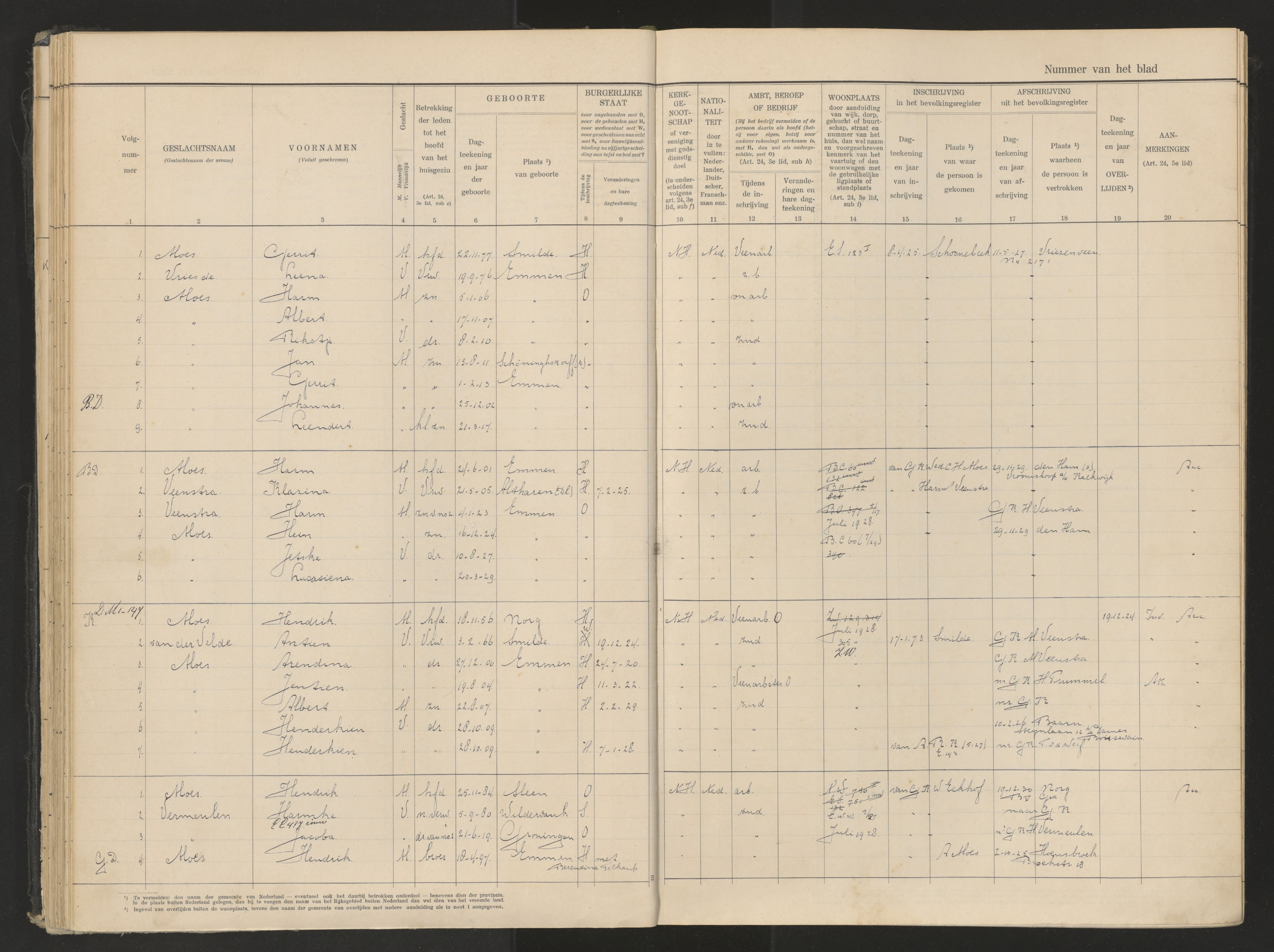 Vertrokken personen Emmen 1926-1936 Moes-Veenstra https://www.wiewaswie.nl/nl/detail/14710039Opmerkingen: vader bruidegom overleden; erkenning 1 kind; echtscheiding Rotterdam 15-03-1948