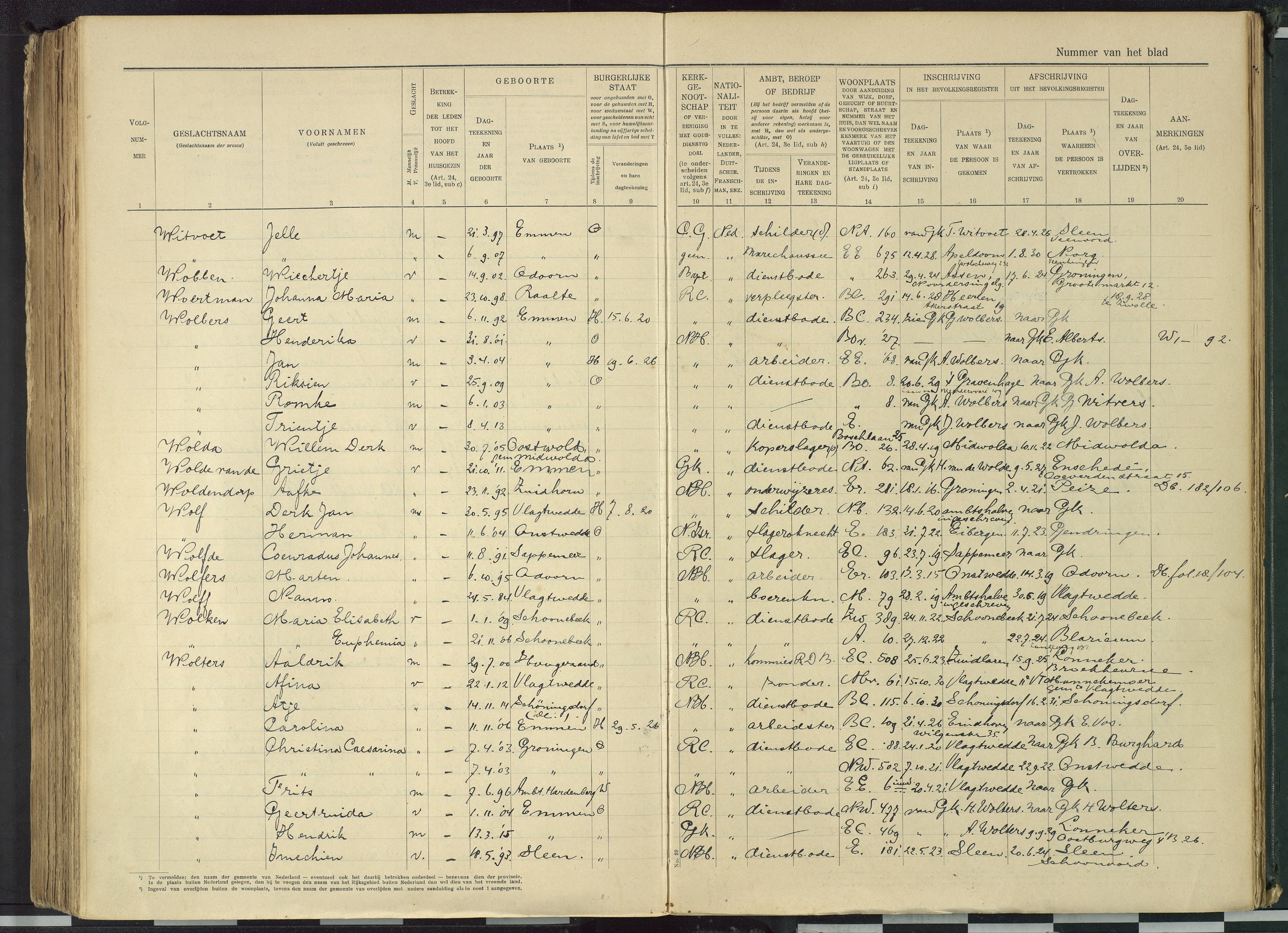 Vertrokken personen dienstbodenregister Emmen 1918-1932 Carolina Wolters