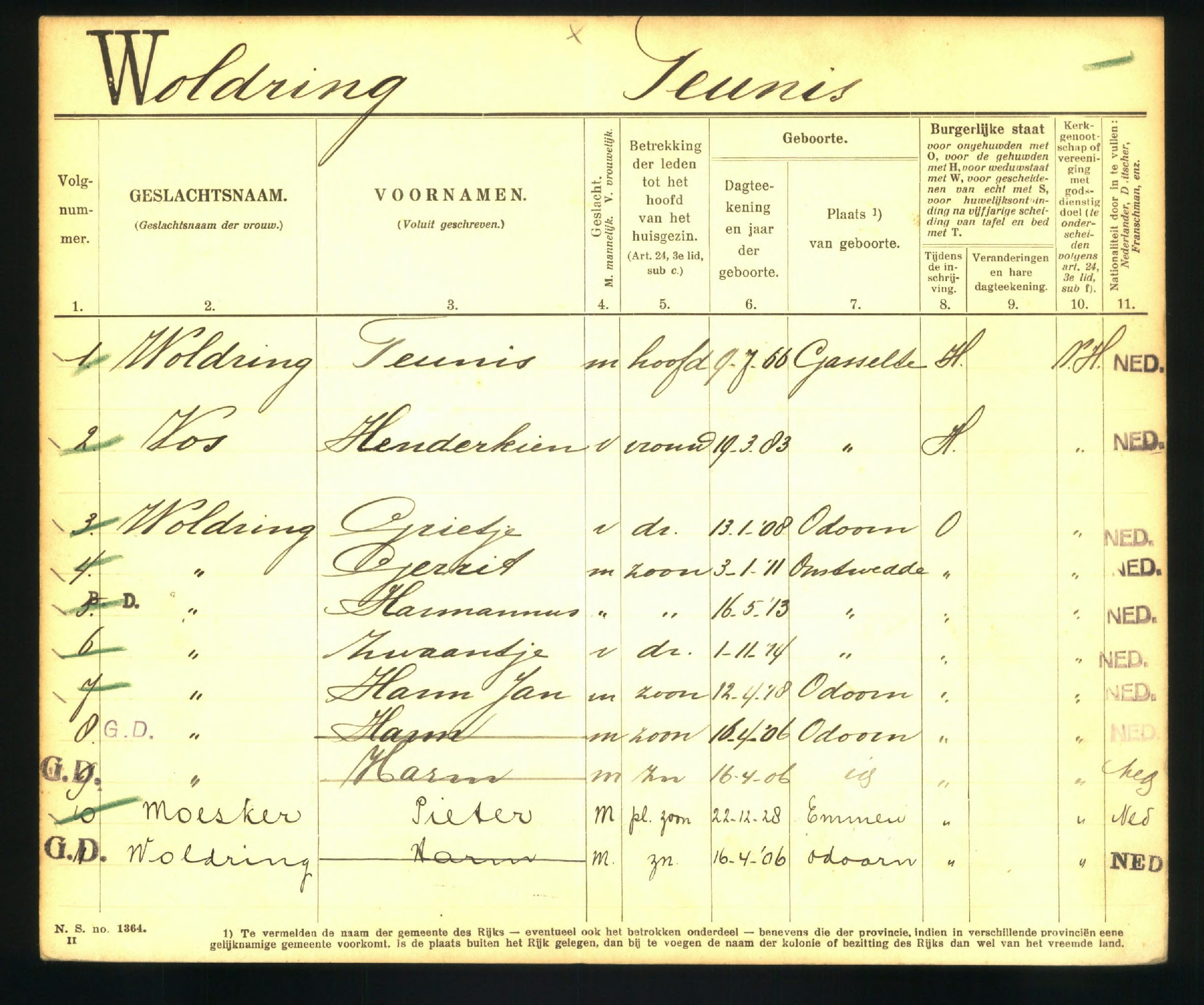 Wilt u bij het overnemen van gegevens uit deze stamboom alstublieft een verwijzing naar de herkomst opnemen: Pauline Berens BC, "Bevolkingsreconstructie Barger-Compascuum + Gezin + Rechtstreekse Voorouders + Nakomelingen", database, Genealogie Online (https://www.genealogieonline.nl/ofb-barger-compascuum/I77597.php : benaderd 31 december 2025), "Teunis Woldring (1866-1960)".