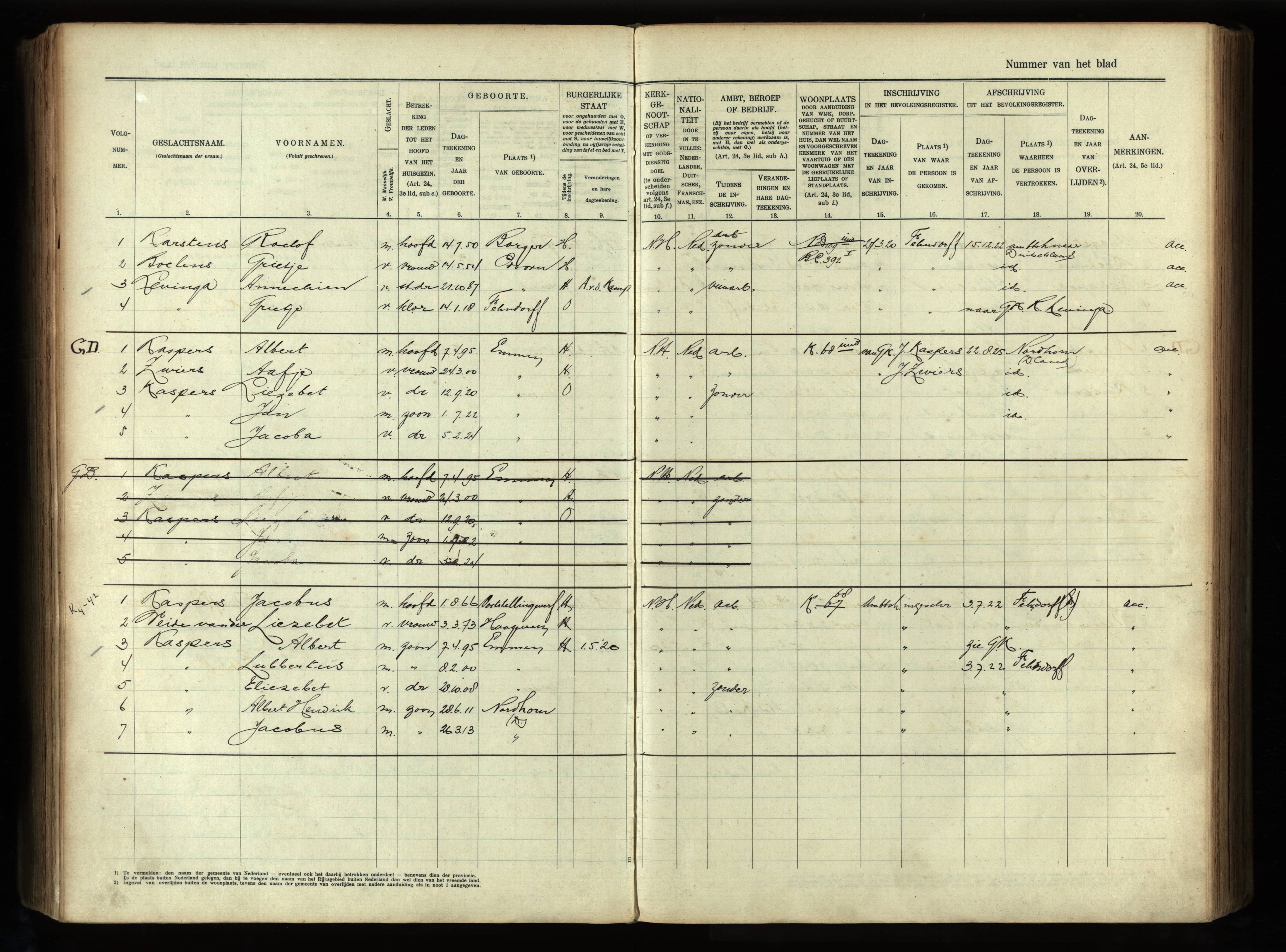 Vertrokken personen Emmen 1918-1925 Karstens-Boelens scan 701120 https://www.wiewaswie.nl/nl/detail/14685907Opmerkingen: weduwnaar Jantien Martens; echtscheiding echtgenote Luchien Reinders; vader bruidegom overleden; moeder bruidegom overleden; vader bruid overleden