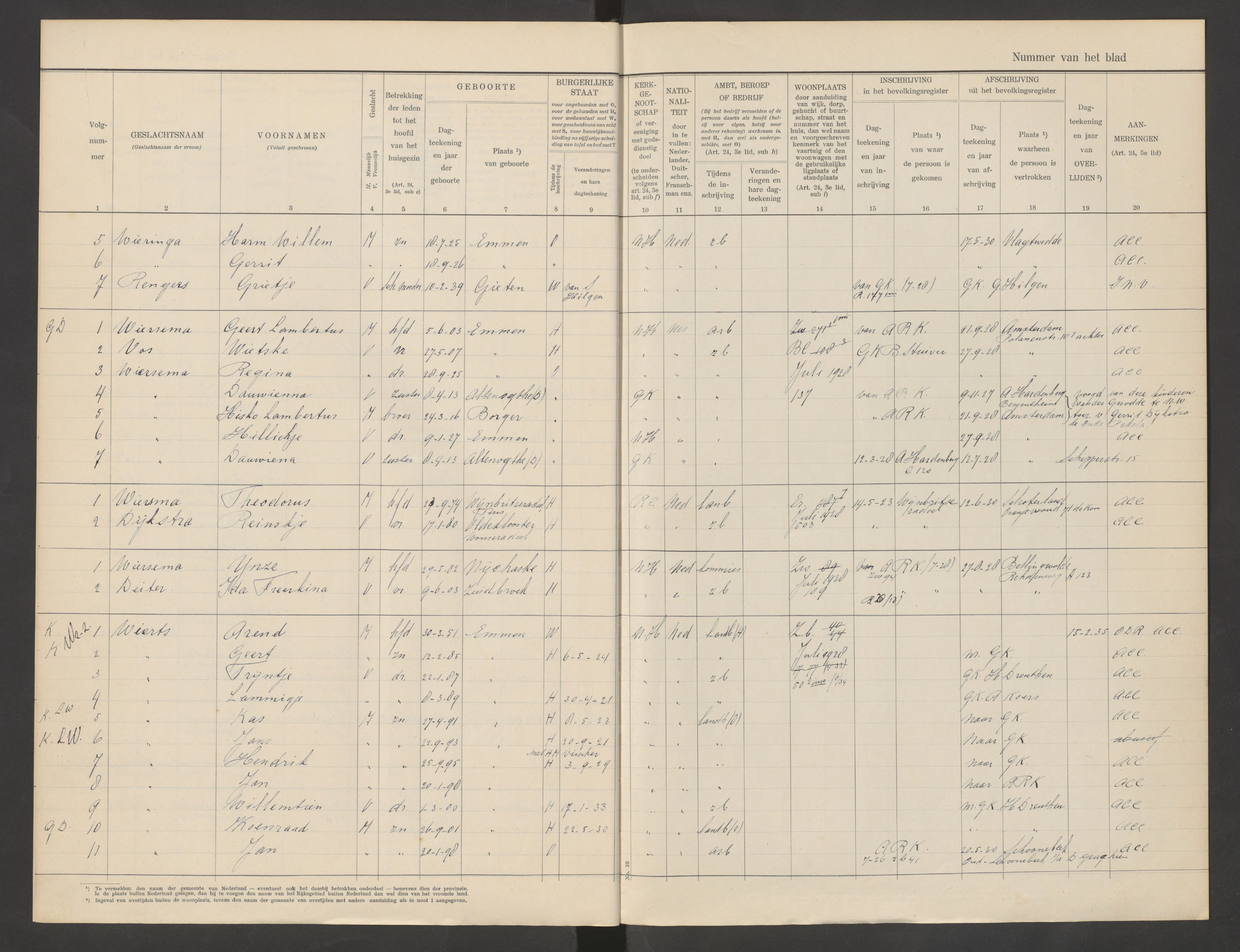 Vertrokken personen Emmen 1926-1936 Wiersema-VosOpmerkingen: vader bruidegom overleden; moeder bruidegom overleden; vader bruid overleden
