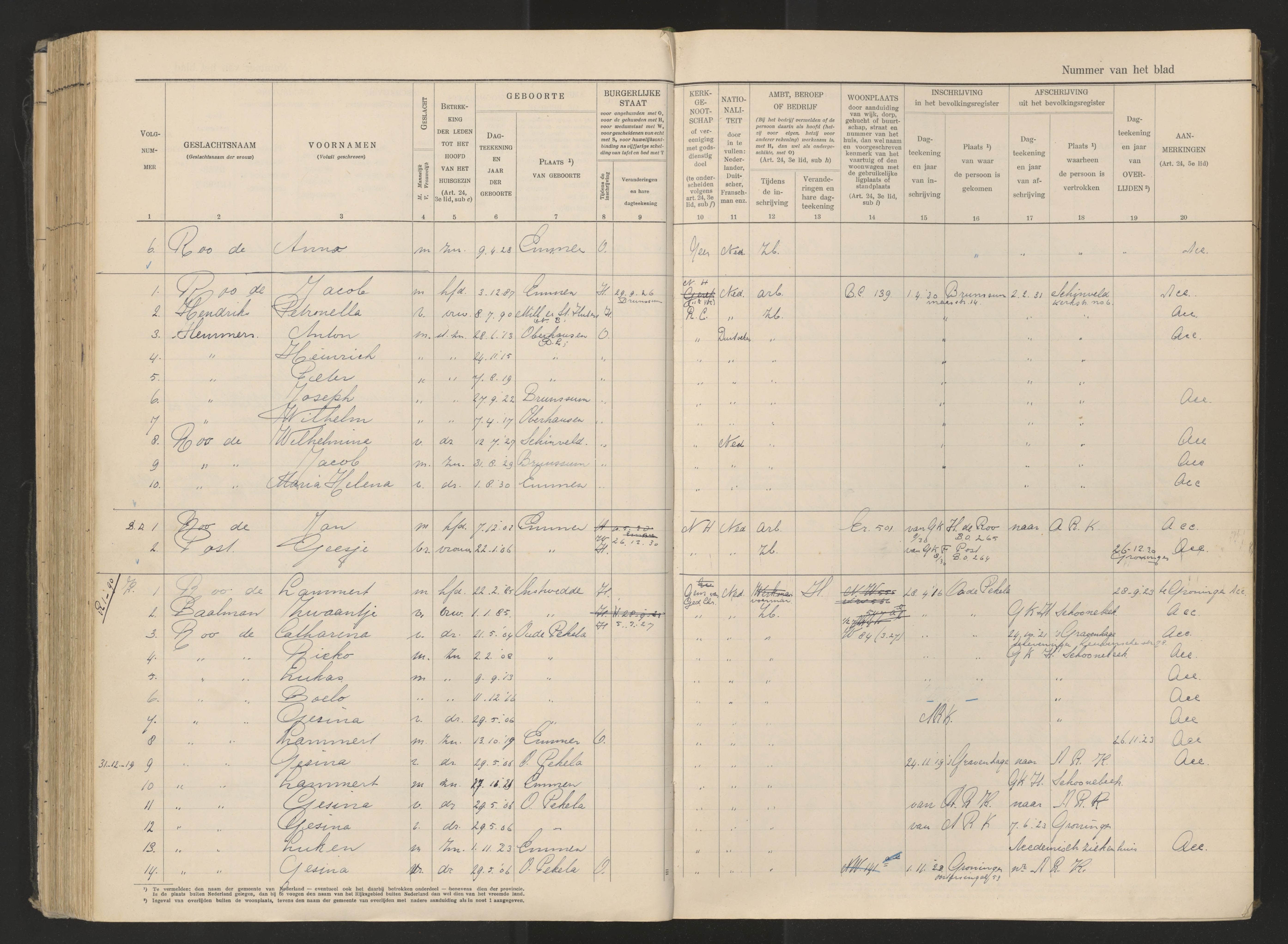 Vertrokken personen Emmen 1926-1936 de Roo-HendriksOpmerking: Bgm wdnr van Geertje Baars Brd wed van Johann Hemmers