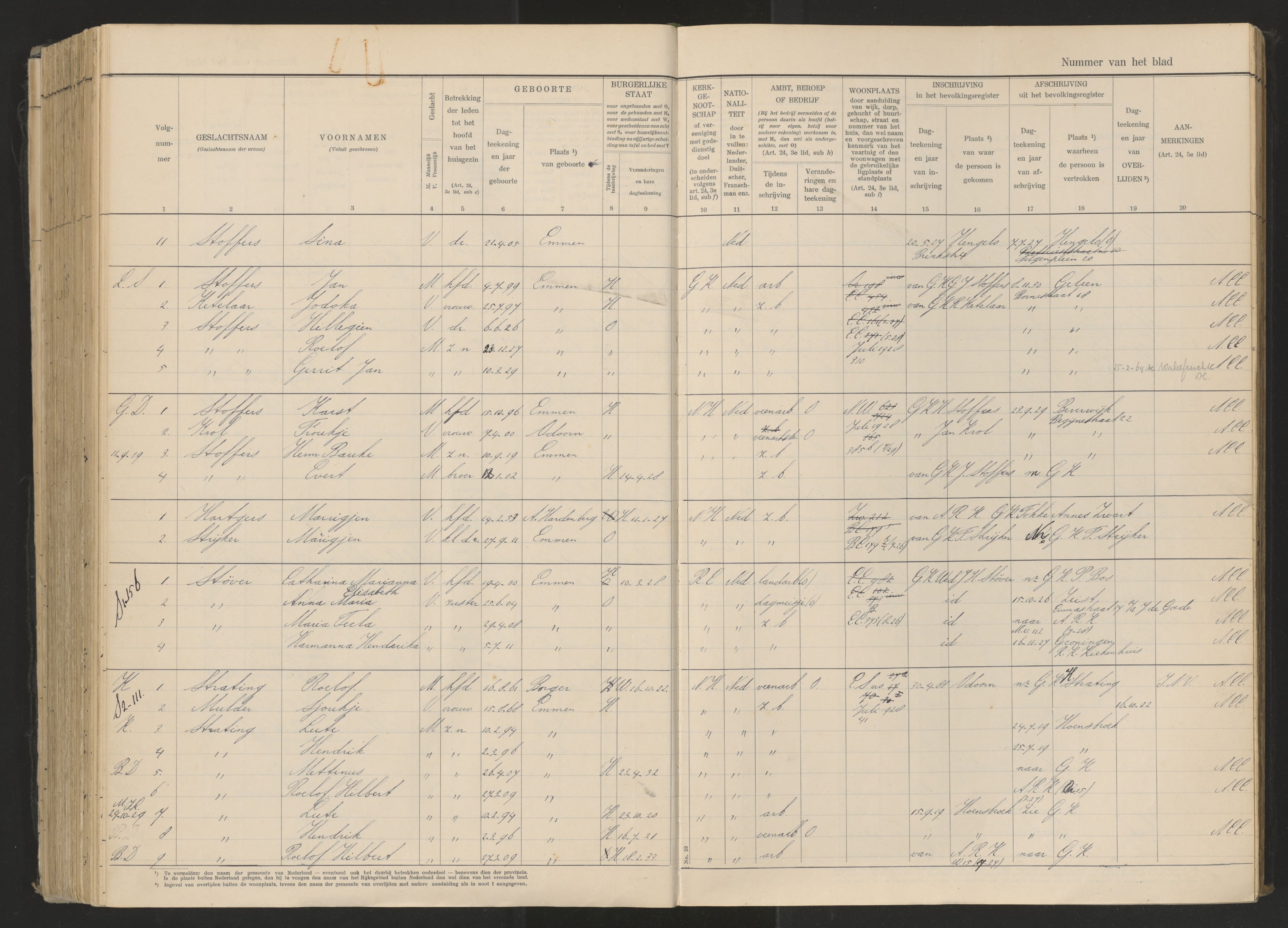 Vertrokken personen Emmen 1926-1936 Zwart-HartgersOpmerkingen: weduwnaar Aaltje Roelofs Leekstra Betten; vader bruidegom overleden; moeder bruidegom overleden; weduwe Jakob Stoker; vader bruid overleden; moeder bruid overleden