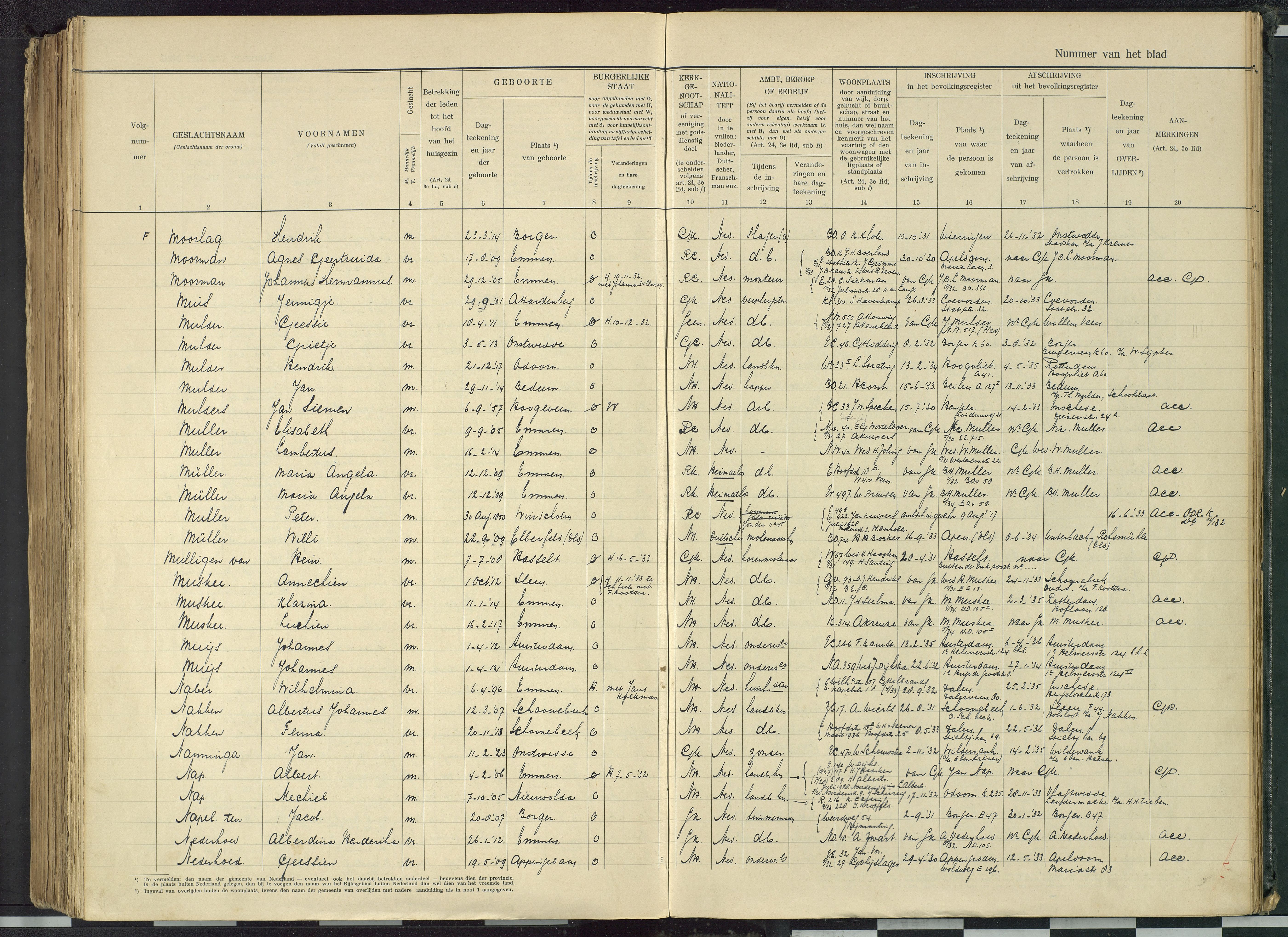 Vertrokken personen dienstbodenregister Emmen 1918-1932 Jan Siemen Muldersaangeefster: Wibbina Dekker weduwe Jan Scholtens 63 vroedvrouw