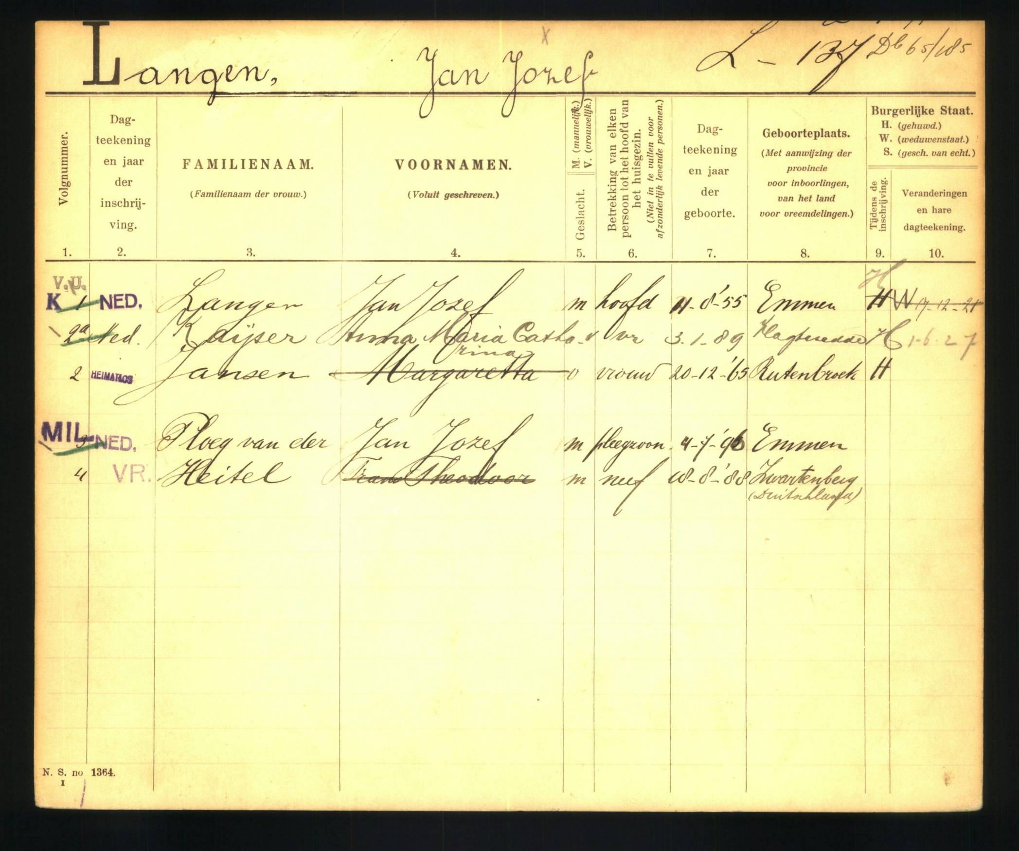 gezinskaart 1918-1936 Langen-Jansen Langen-Kaijser scan 690286# bruidegom-achternaam bruidegom-voornamen geboortedatum-bruidegom geboorteplaats-bruidegom vader-bruidegom moeder-bruidegom bruid-achternaam bruid-voornamen geboortedatum-bruid geboorteplaats-bruid vader-bruid moeder-bruid toekomstige-woonplaats trouwdatum