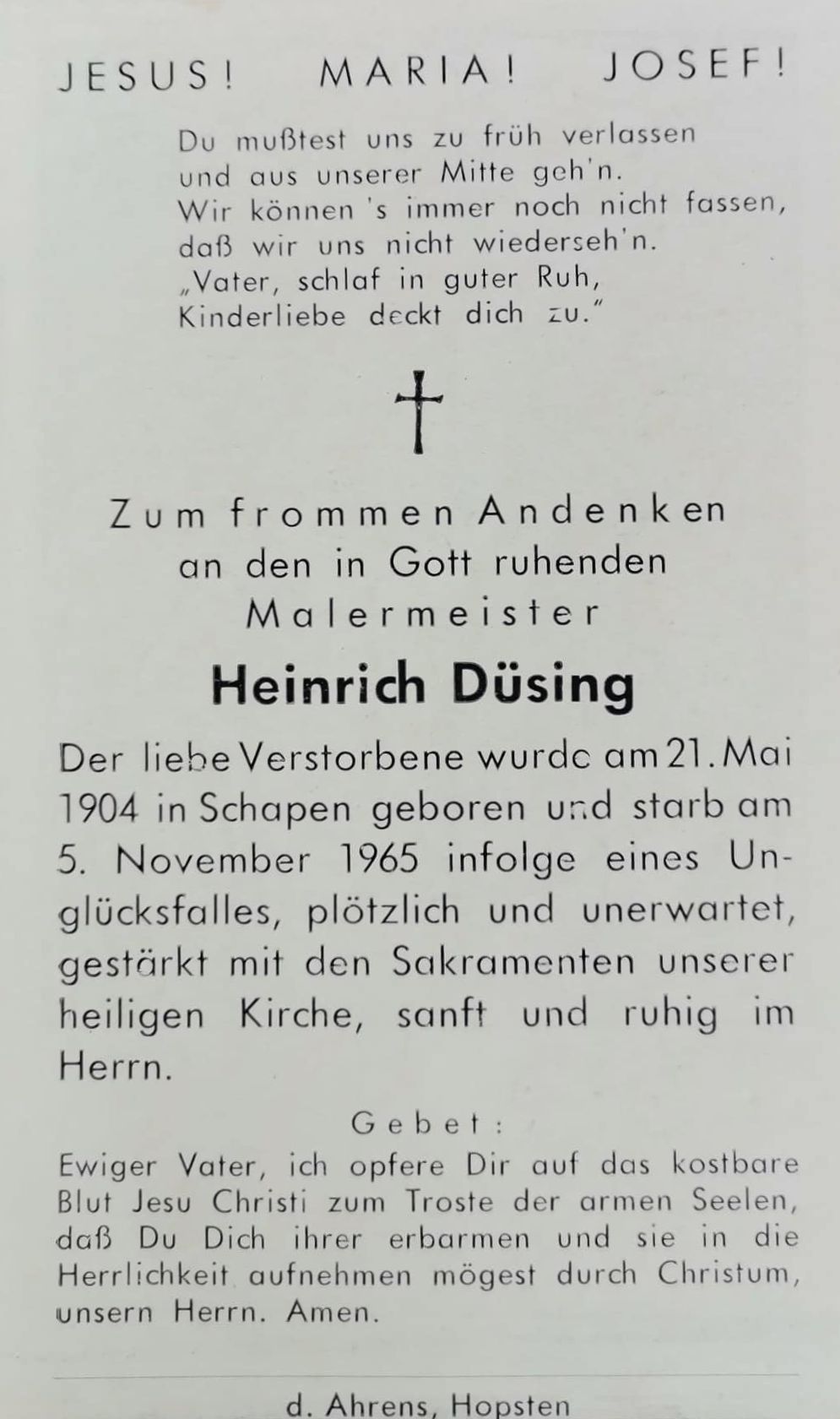 Wilt u bij het overnemen van gegevens uit deze stamboom alstublieft een verwijzing naar de herkomst opnemen: Pauline Berens Wesuwe, "Bevolkingsreconstructie Wesuwe + Nakomelingen + Rechtstreekse Voorouders", database, Genealogie Online (https://www.genealogieonline.nl/ofb-wesuwe/I3312.php : benaderd 9 januari 2026), "Heinrich Düsing (1904-1965)".