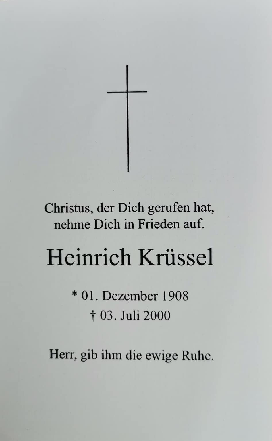 Wilt u bij het overnemen van gegevens uit deze stamboom alstublieft een verwijzing naar de herkomst opnemen: Pauline Berens Wesuwe, "Bevolkingsreconstructie Wesuwe + Nakomelingen + Rechtstreekse Voorouders", database, Genealogie Online (https://www.genealogieonline.nl/ofb-wesuwe/I63411.php : benaderd 27 januari 2026), "Heinrich Krüssel (1908-2000)".