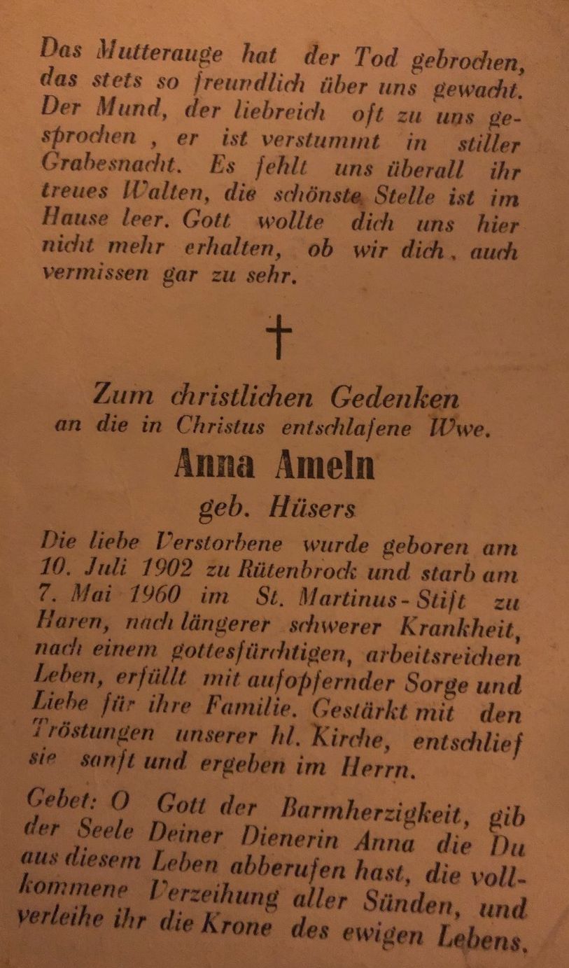 Anna Ameln-Hüsers (1897-1960) bidprentje