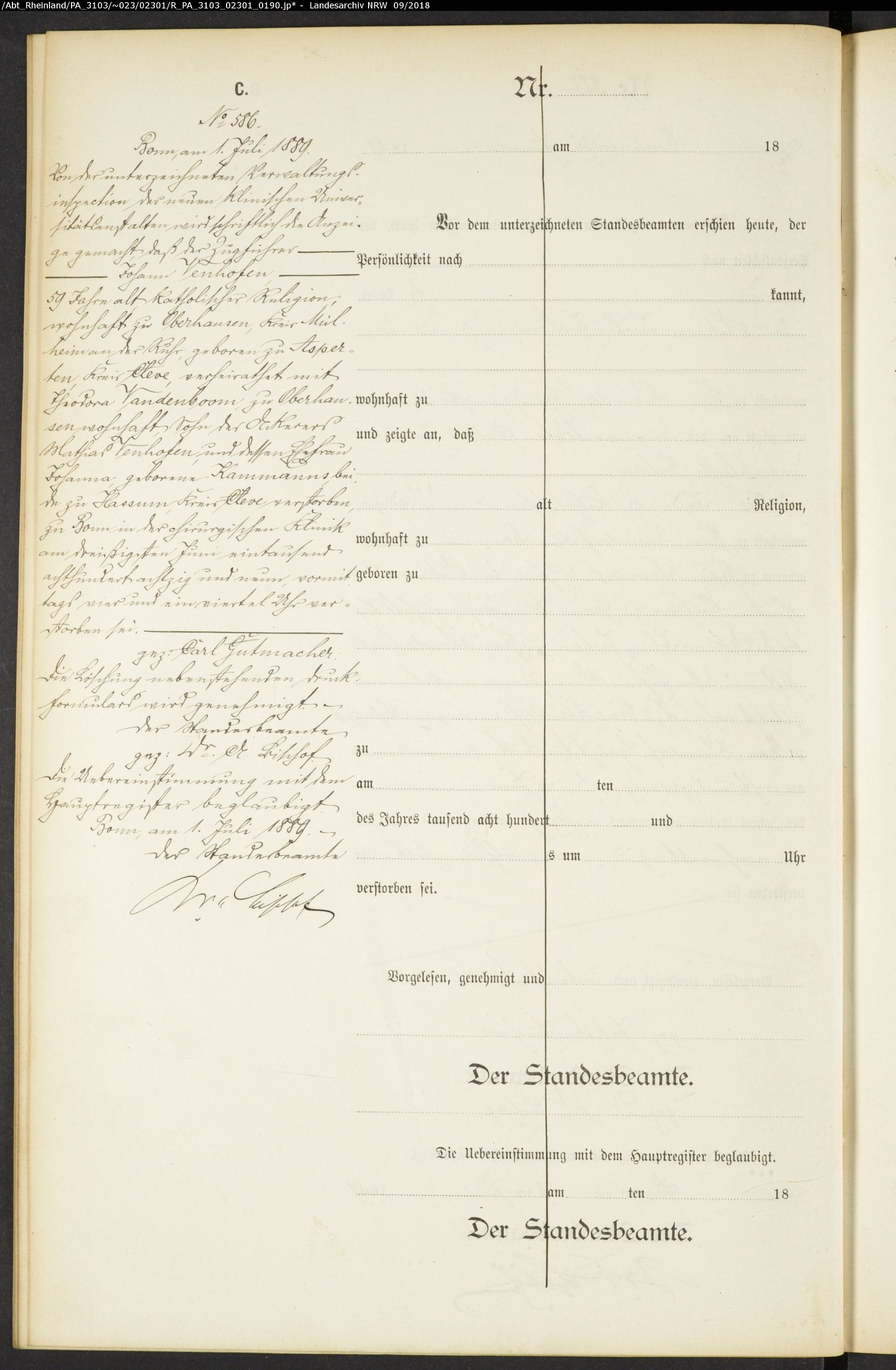 Akte 1889-586 Bonn