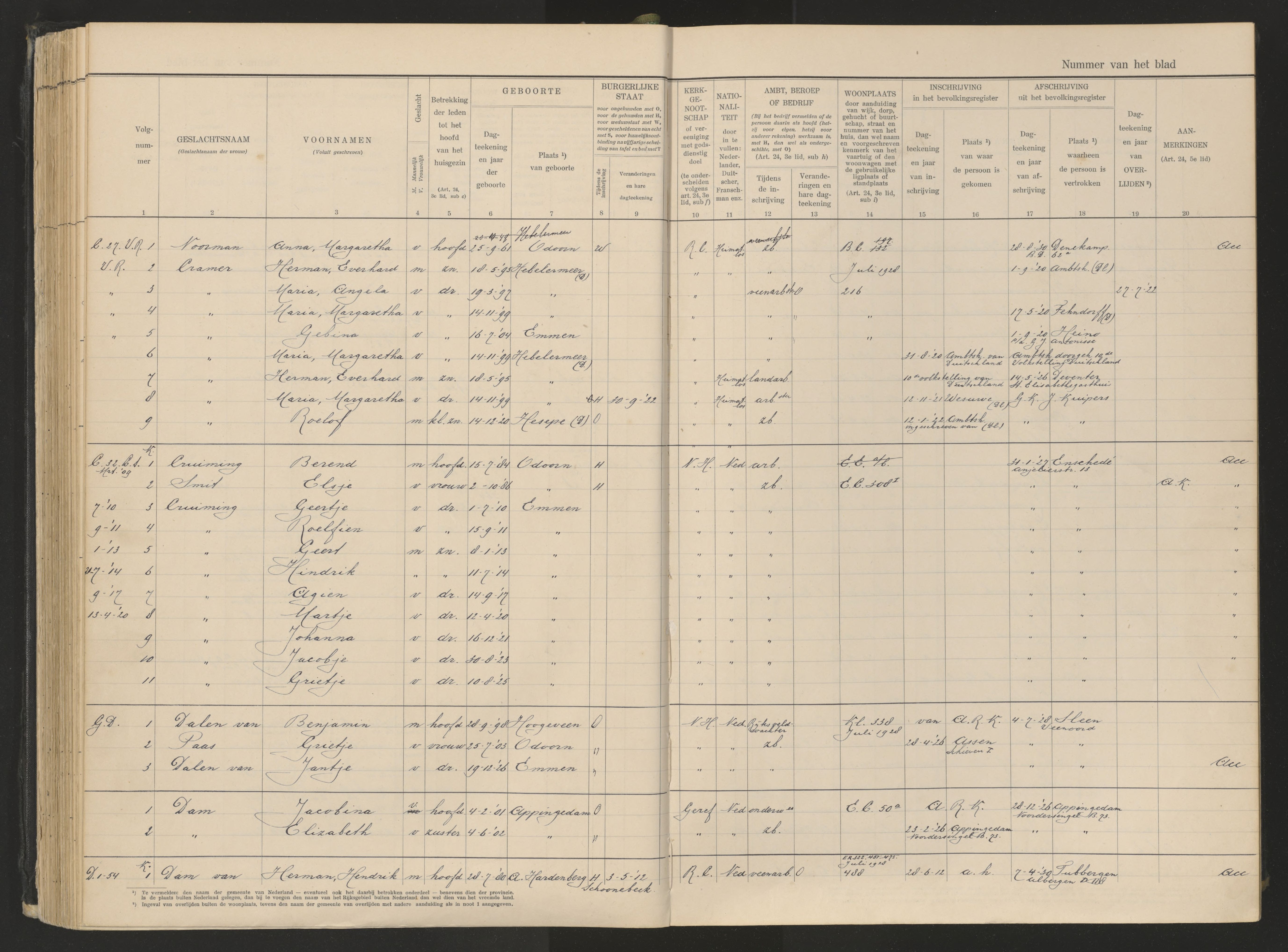 Vertrokken personen Emmen 1926-1936 Cramer-Noorman16 Crämer Johann Heinrich Colonist Wittwer zu Hebelermeer 18491020 Hebelermeer Crämer Matthias Hüsers Margaretha Colonist Noormann Anna Margaretha Dienstmagd zu Groß Fullen 18610924 Zandberg (Nederland) Noormann Maria Angela unverehelichte Hebelermeer 18940828 Wesuwe: Hebelermeer