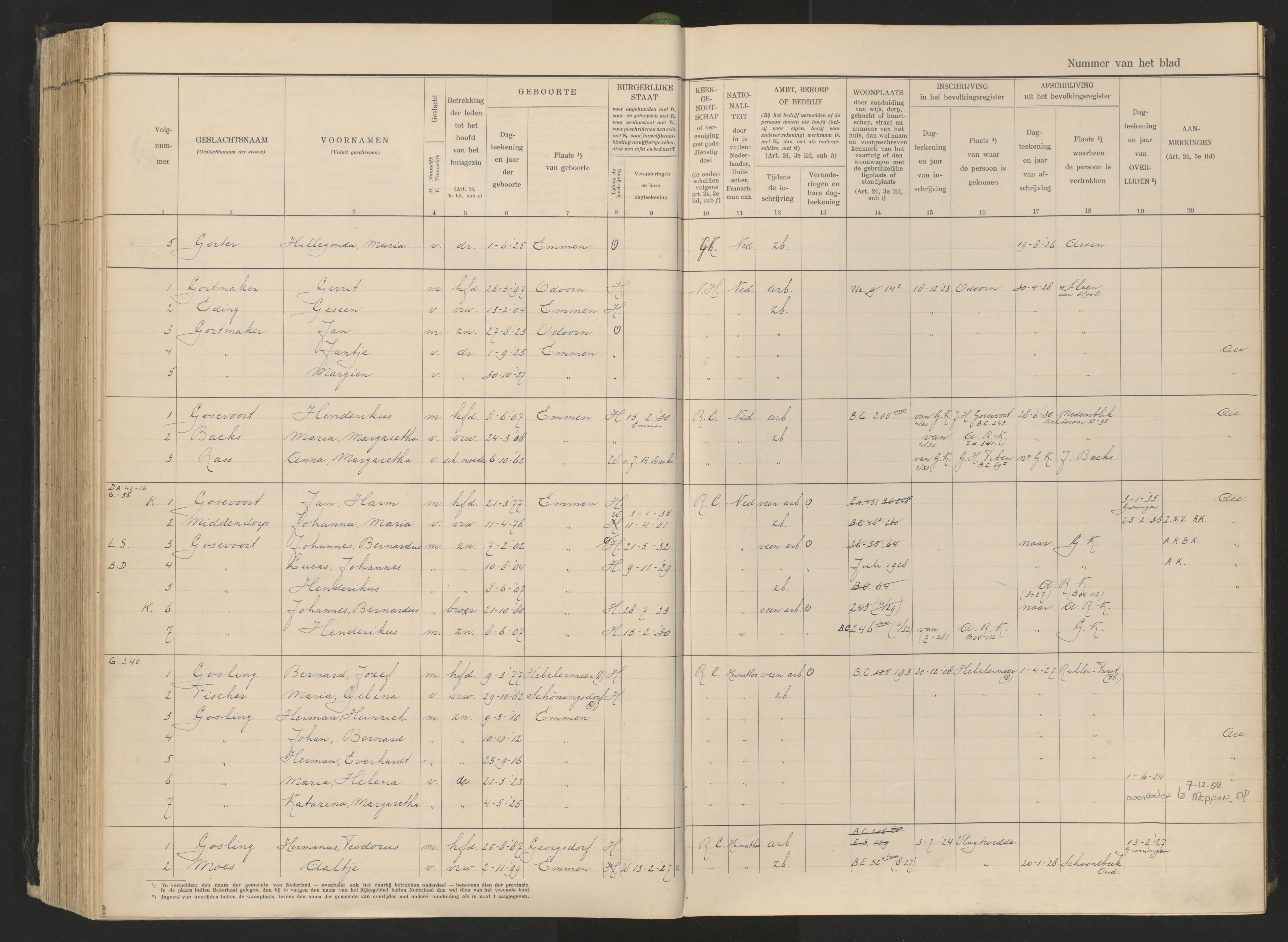 Vertrokken personen Emmen 1926-1936 Gosling-Fischer23 1 Gösling Bernard Joseph Haussohn 18770309 Hebelermeer Gösling Hermann Heinrich Kolonist zu Hebelermeer Feringa Helena Fischer Maria Gabina Haustochter zu Hebelermeer 18821029 Schöninghsdorf Fischer Johann Bernard Pächter zu Hebelermeer Koop Anna Maria Barger-Compascuum 19080901