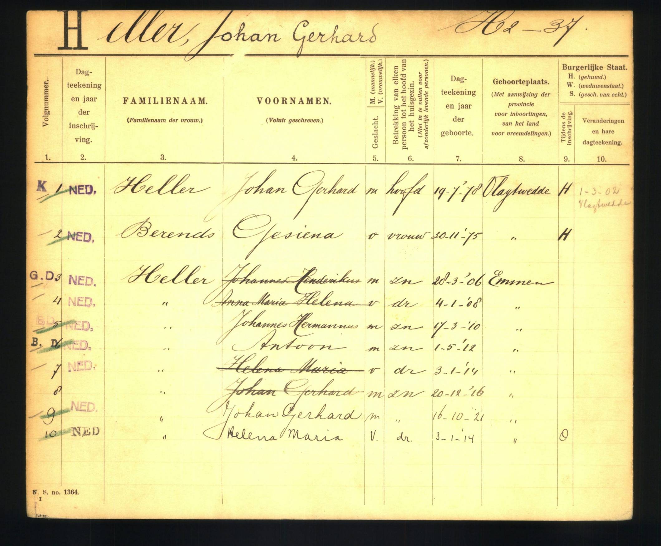gezinskaart 1918-1936 Heller-Berends scan 686078Huwelijk 01-03-1902 Vlagtwedde