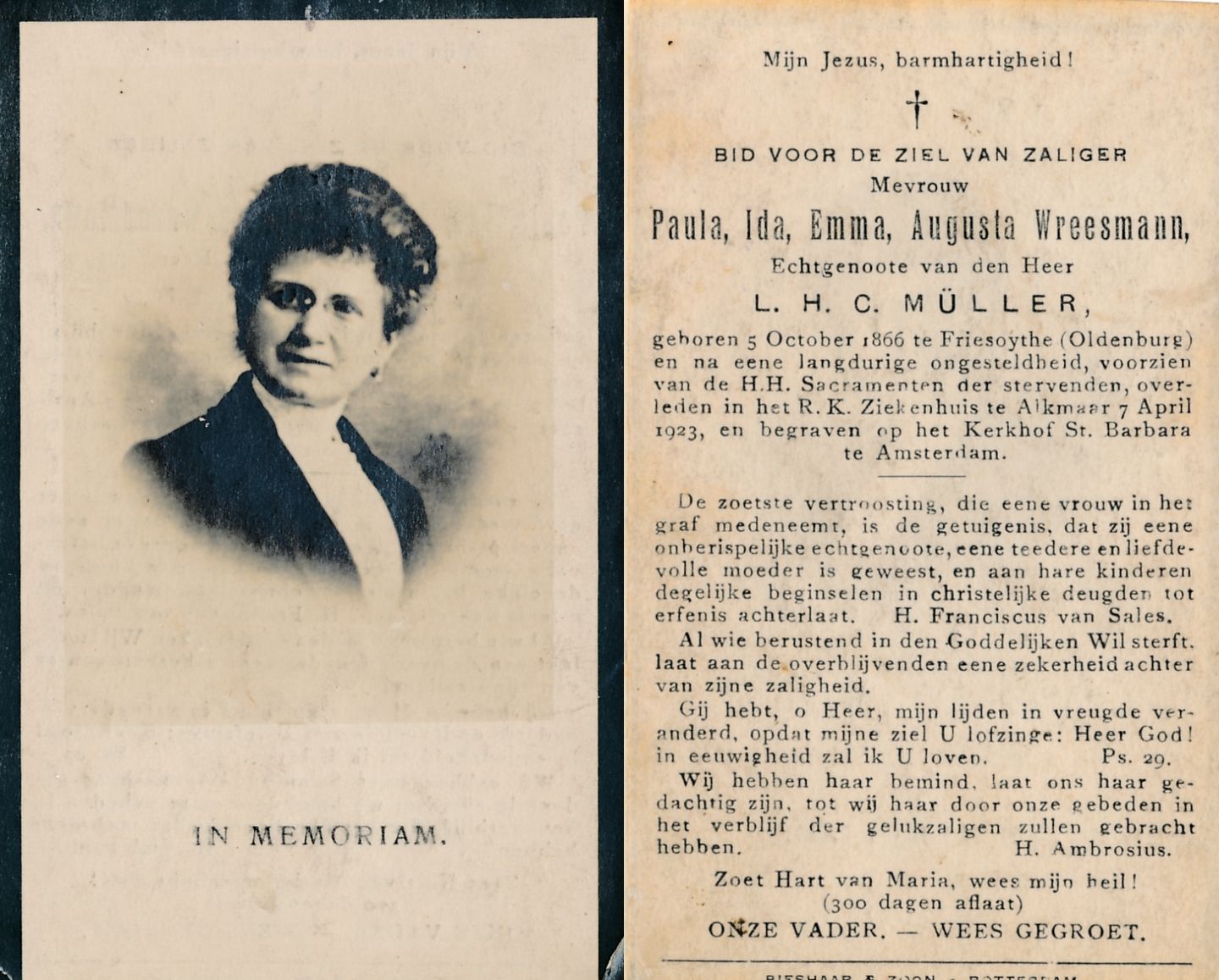 Paula Ida Emma Augusta Müller-Wreesmann bidprentjeSt Barbara